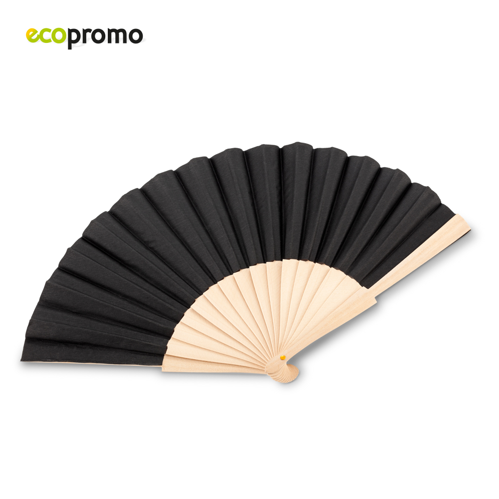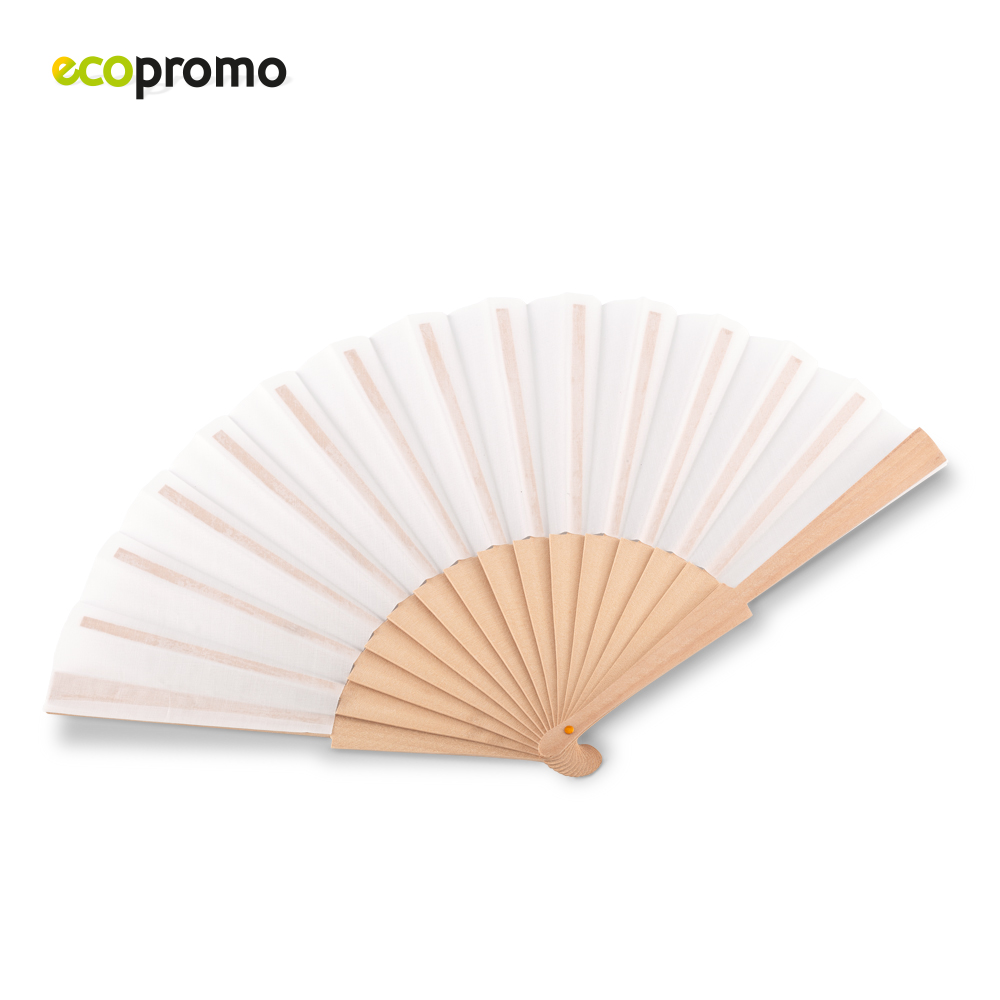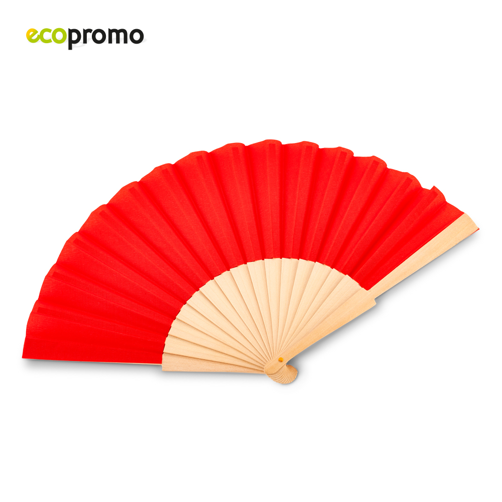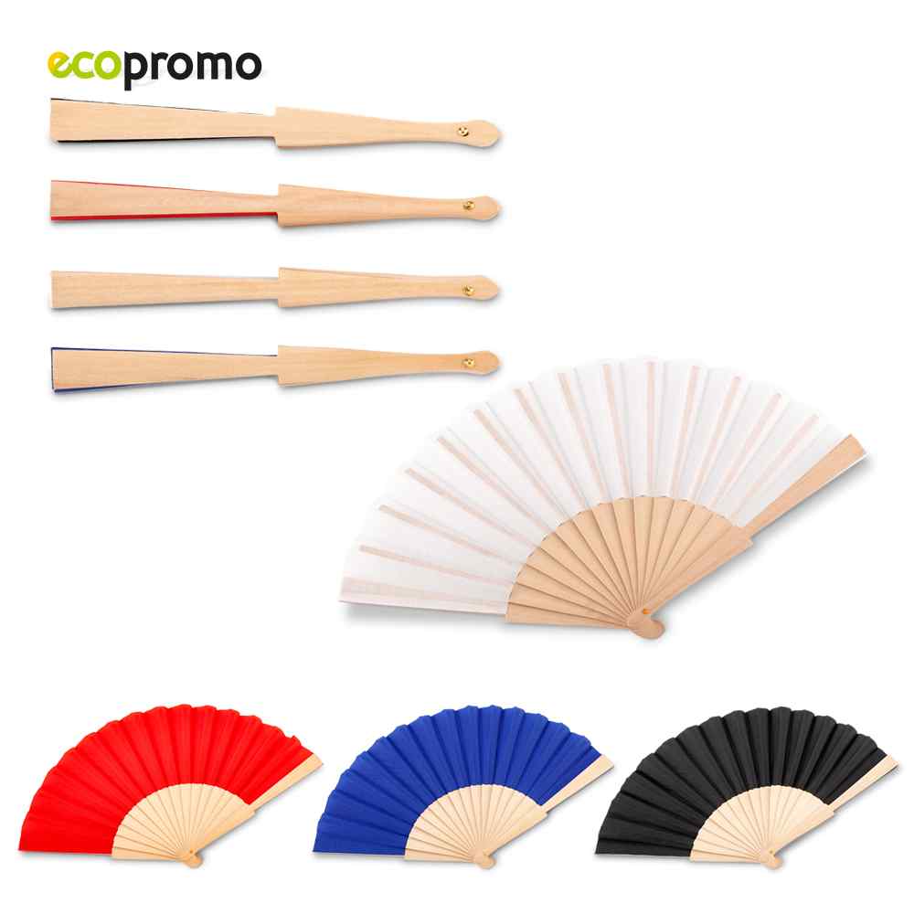 Abanico con cuerpo y 14 brazos en madera. Tela en poliéster. Medidas Abierto: 41.2 cm x 22.7 cm.. Marca: 6 cm – Screen (Bajo condiciones especiales, consulte con su asesora) / Tampografía 4.5 cm / DTF 6 cm.