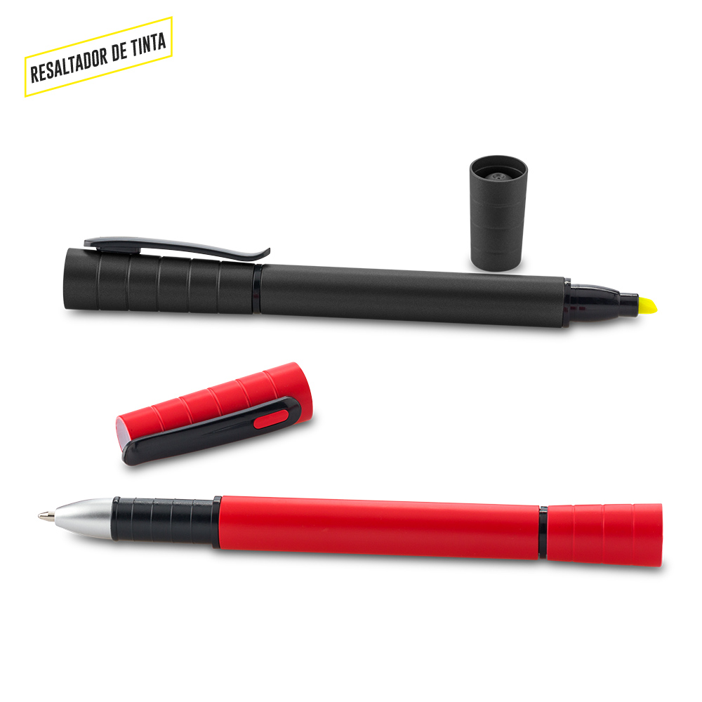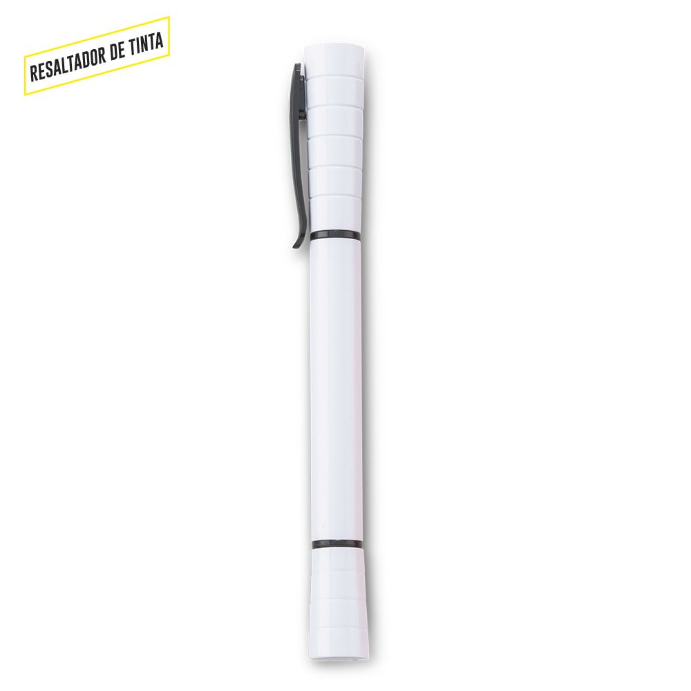 Bolígrafo plástico con resaltador de tinta. Medidas: 15 cm Marca: 4.5 cm / Tampografía