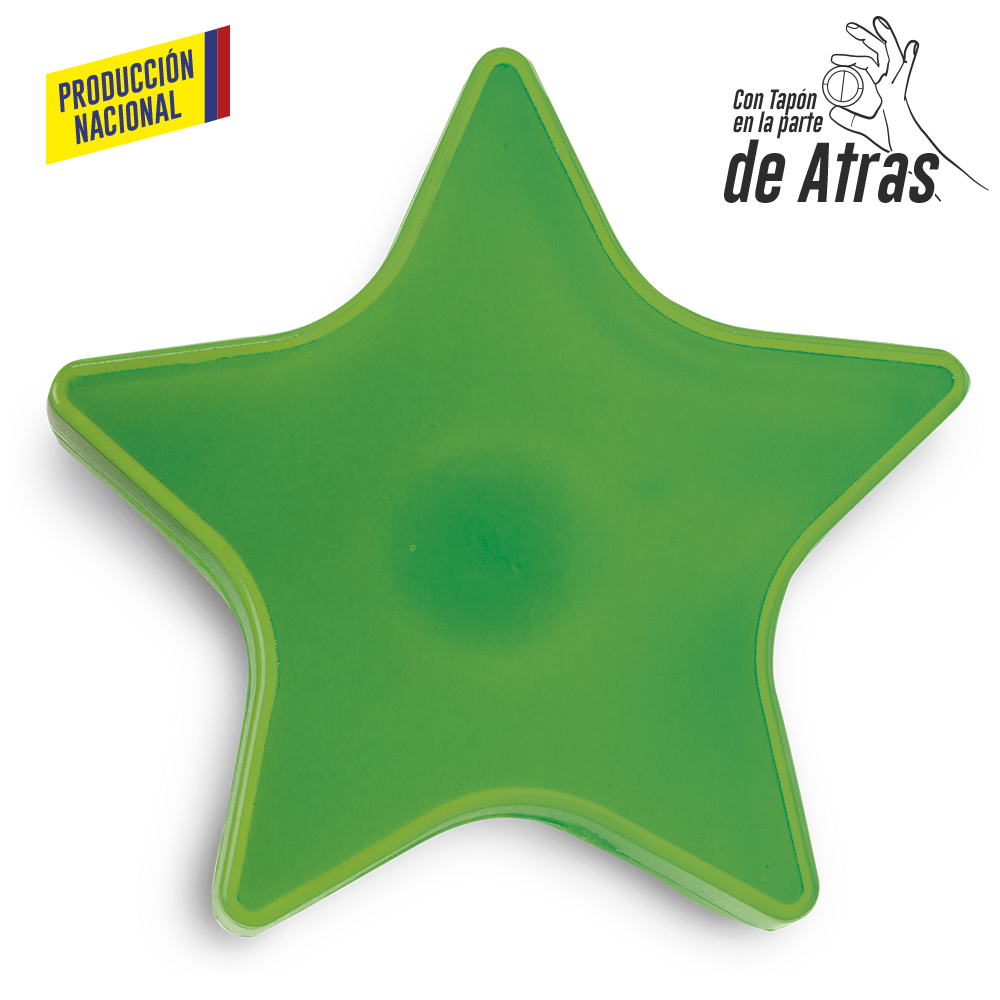 Alcancía en poliestireno en forma de estrella. Con tapón removible. Medidas: 16 cm x 16 cm x 5.5 cm Marca: 5 cm / Tampografía