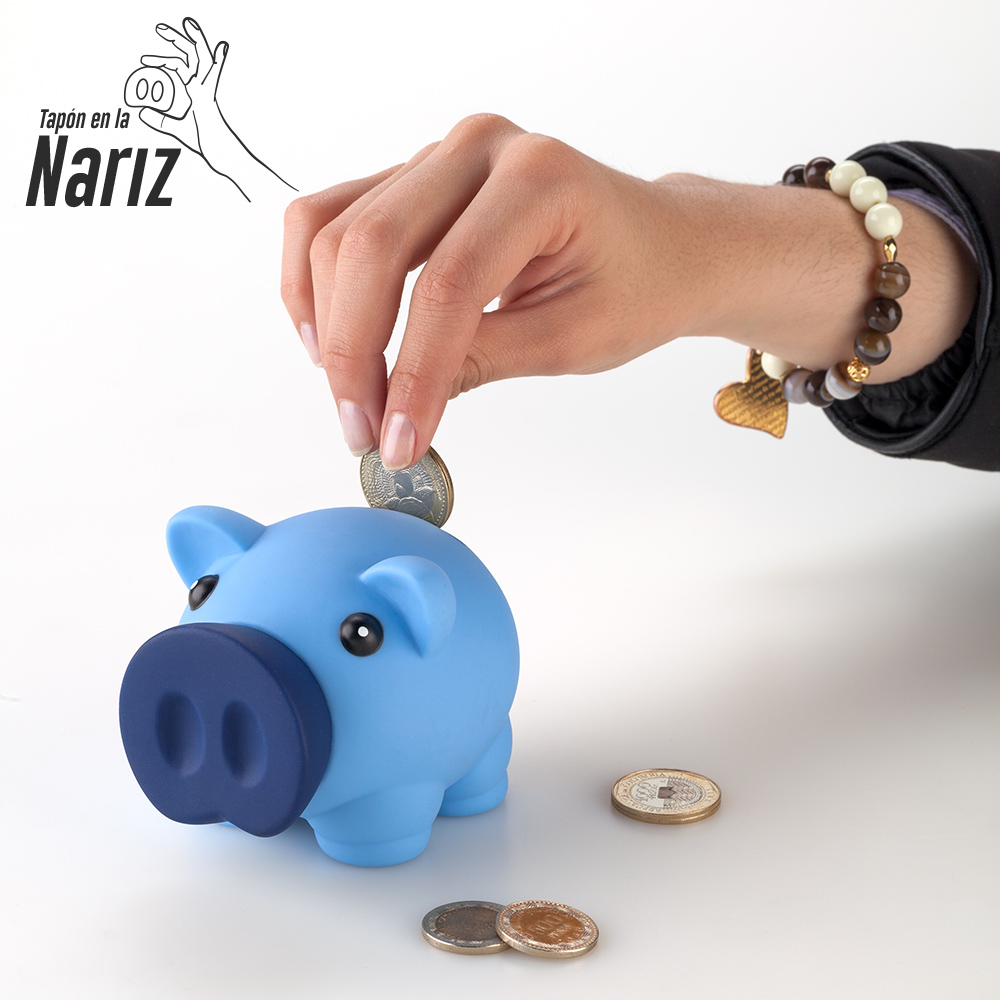 Alcancia en PVC con forma de cerdito.