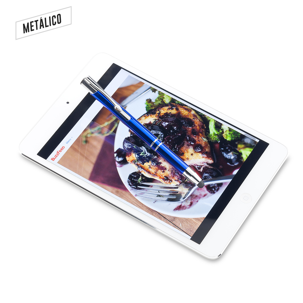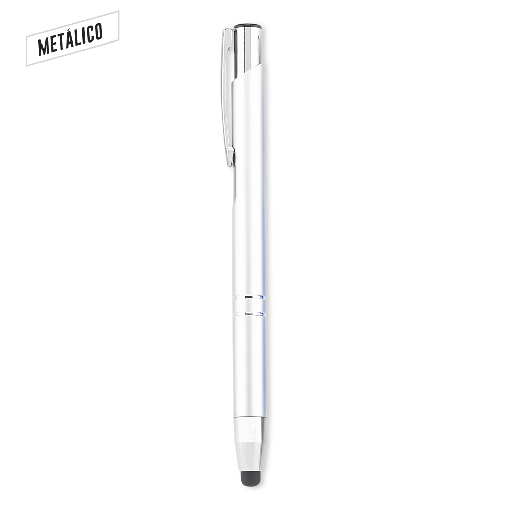 Bolígrafo metálico con stylus. Medidas: 14 cm Marca: 4 cm / Láser