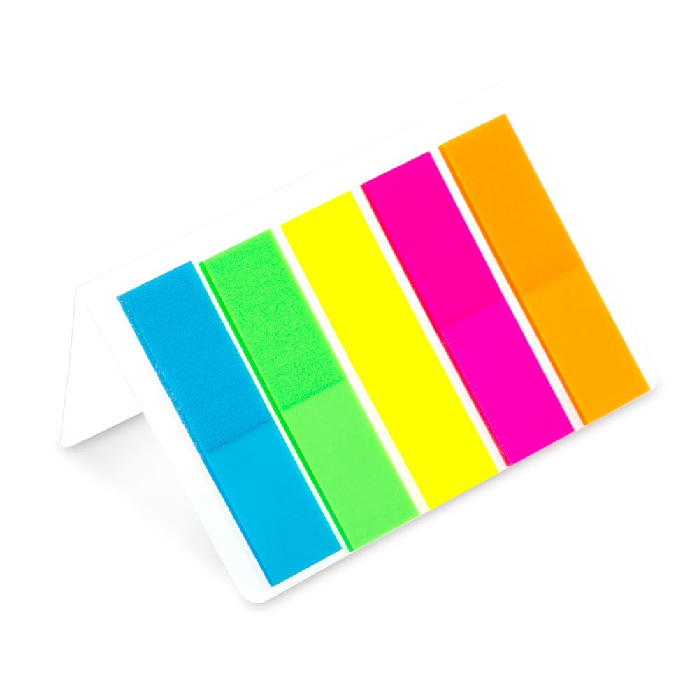 Juego de 5 stickies de colores plásticos, 25 unidades por color.