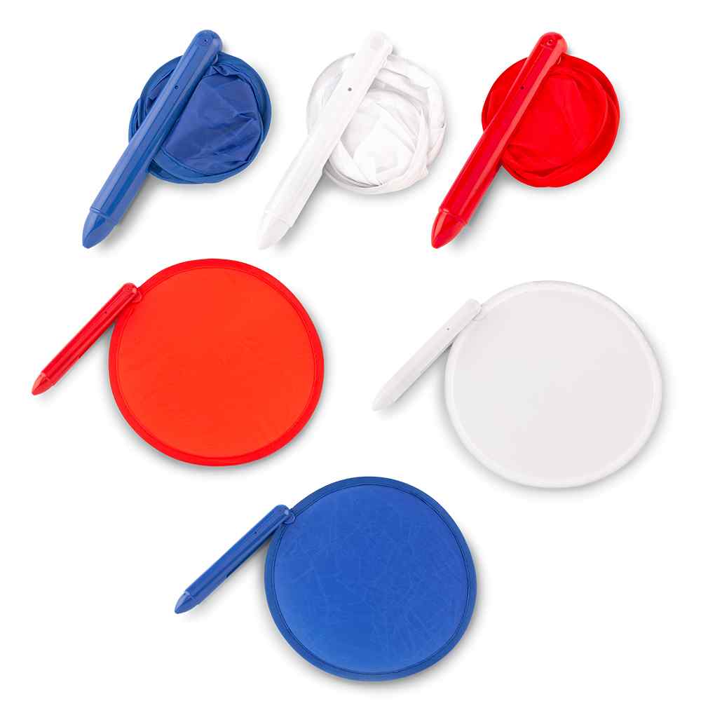 Bolígrafo plástico con abanico plegable en lona poliéster.