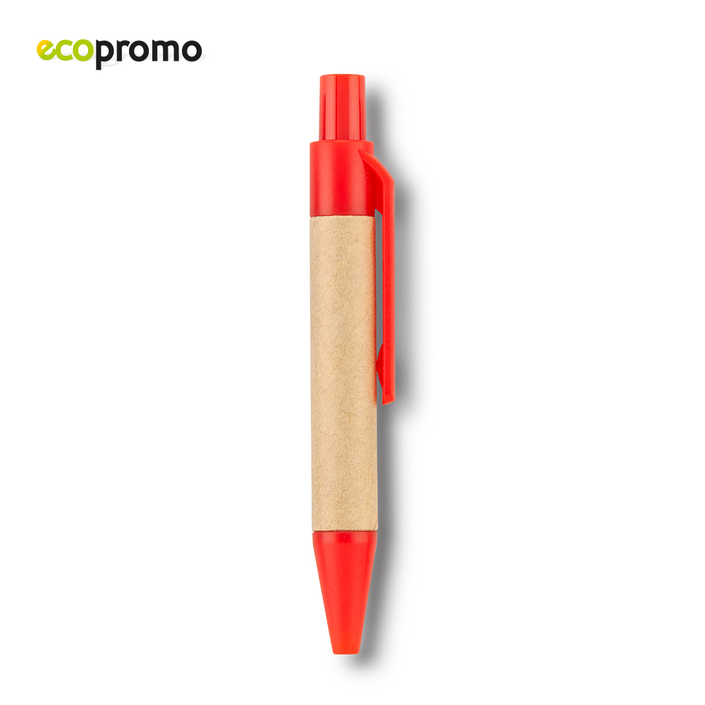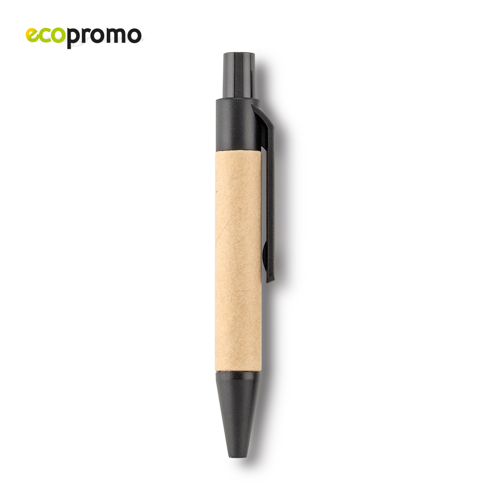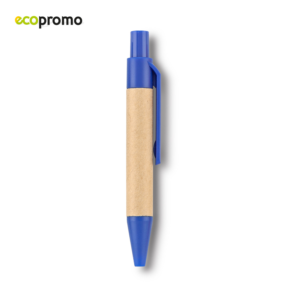 Mini bolígrafo en cartón, clip y punta plástica. Medidas: 8.5 cm . Marca: 2 cm / Tampografía