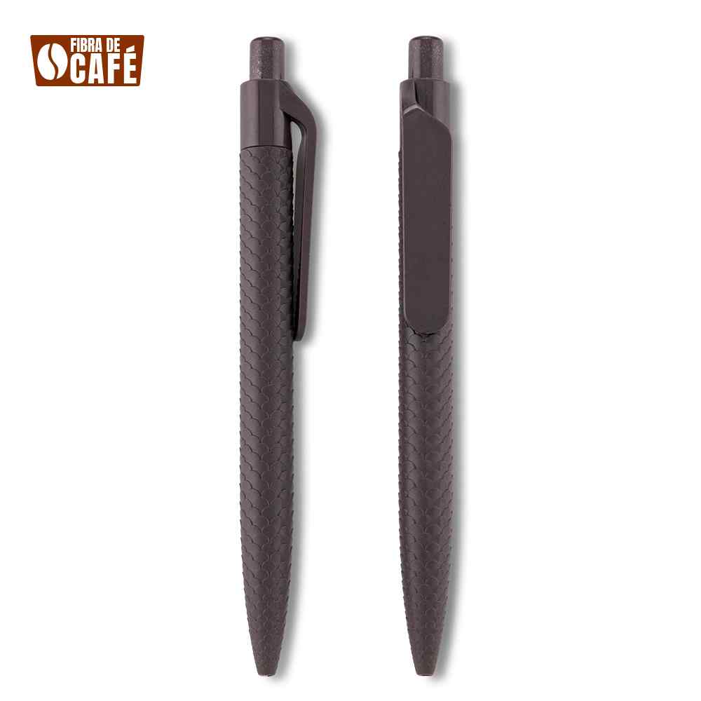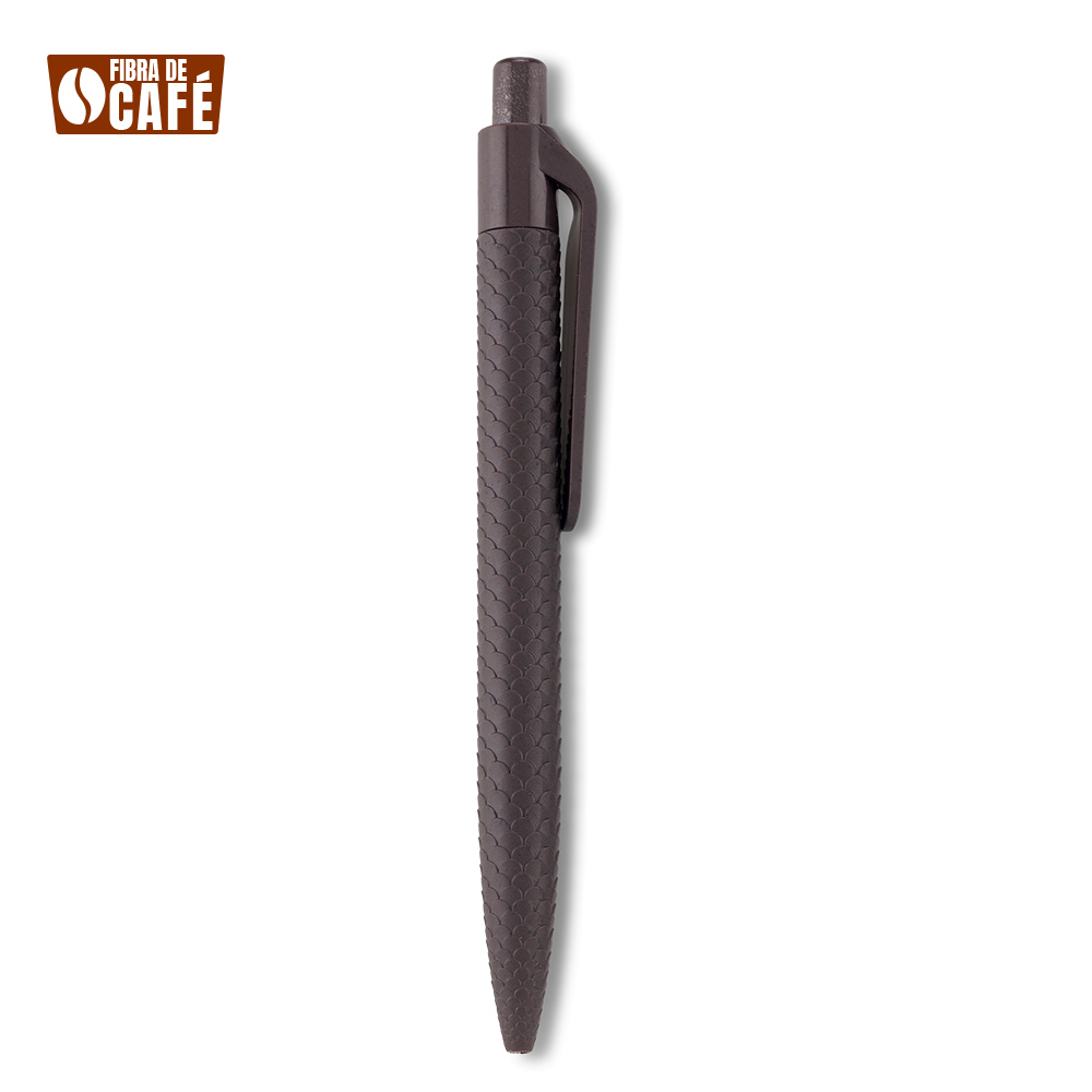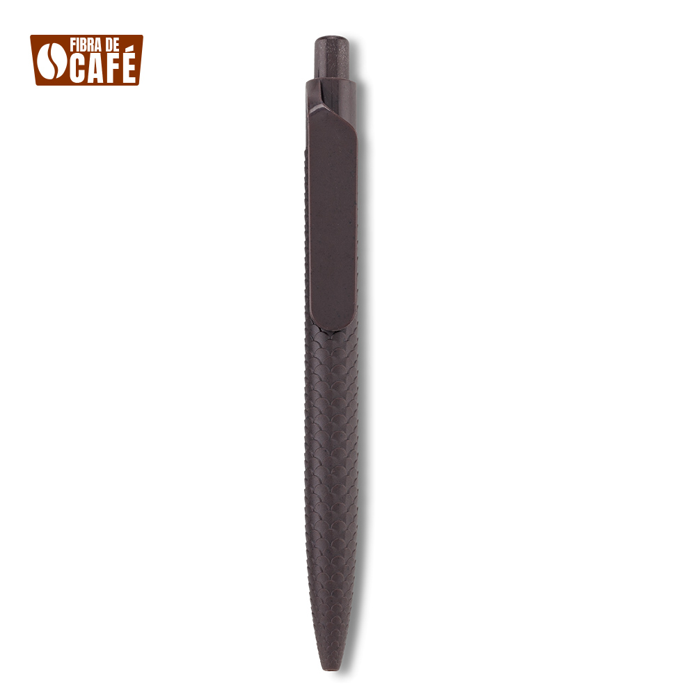 Bolígrafo elaborado en plástico ABS con fibra de Café. Mecanismo Push. El porcentaje de material ecológico tiene un promedio de biodegradabilidad de 2-3 años después del fin de su vida útil. Medidas: 14 cm Marca: 3 cm / Tampografía