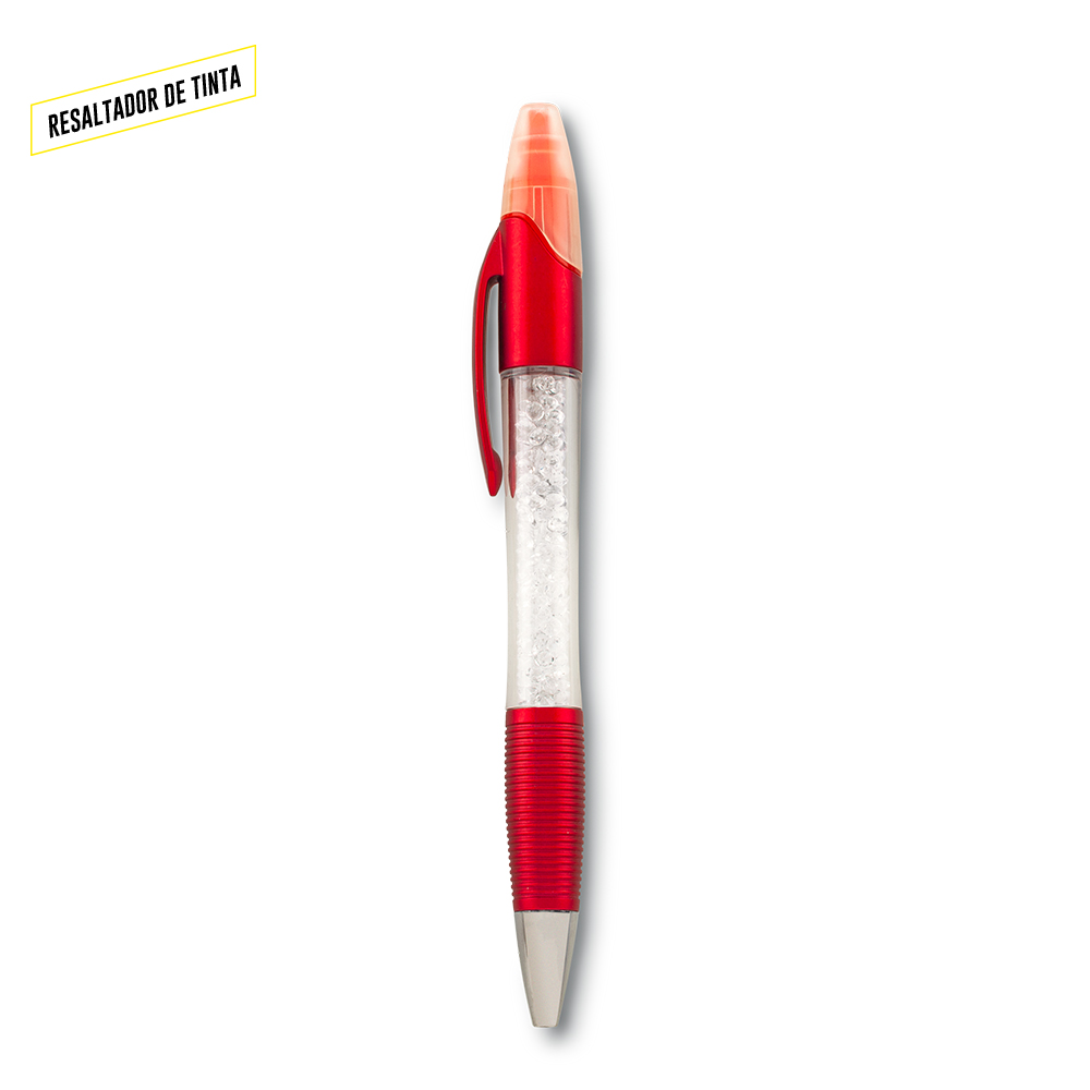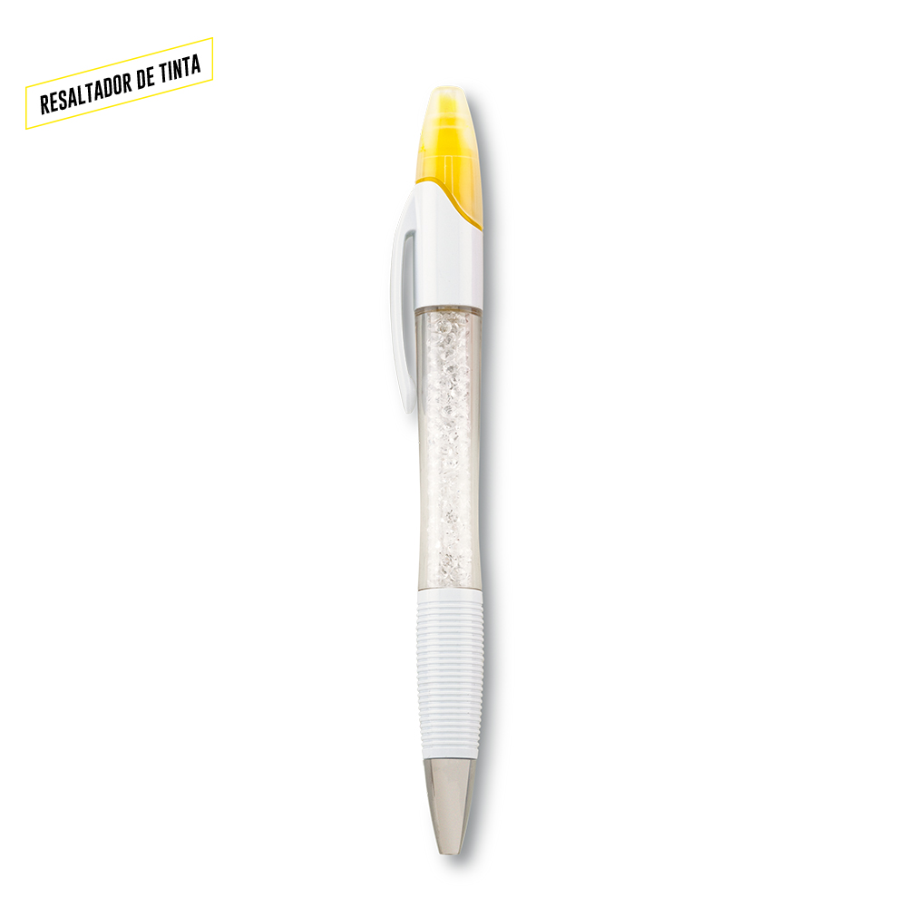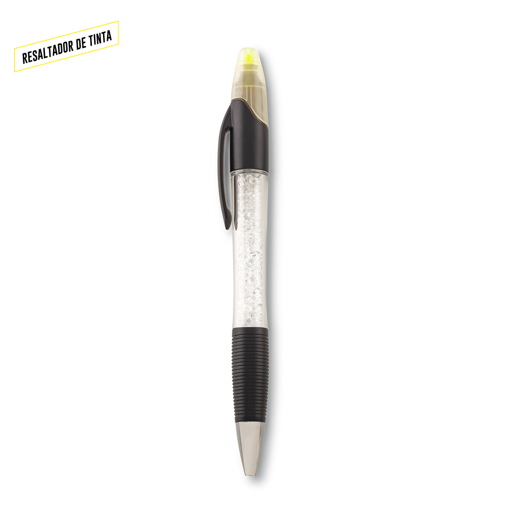 Bolígrafo plástico, mecanismo twist, con resaltador de tinta. Medidas: 14.5 cm. . Marca: 4 cm x 0.7 cm / Tampografía.