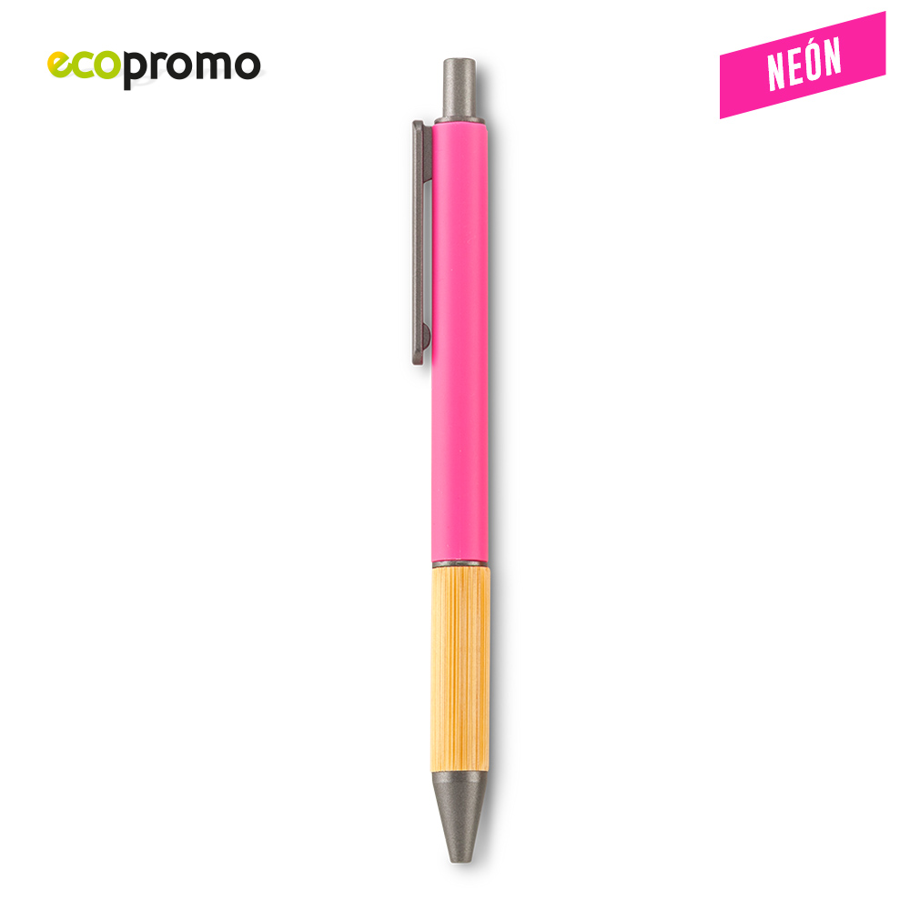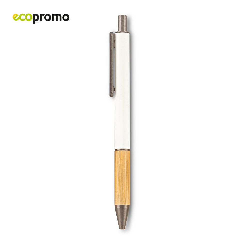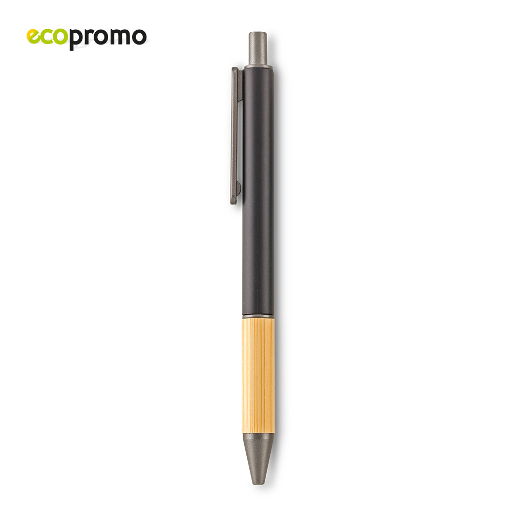 Bolígrafo plástico con grip de bambú. Mecanismo Push. Medidas: 14.5 cm Marca: 3.5 cm / Tampografía