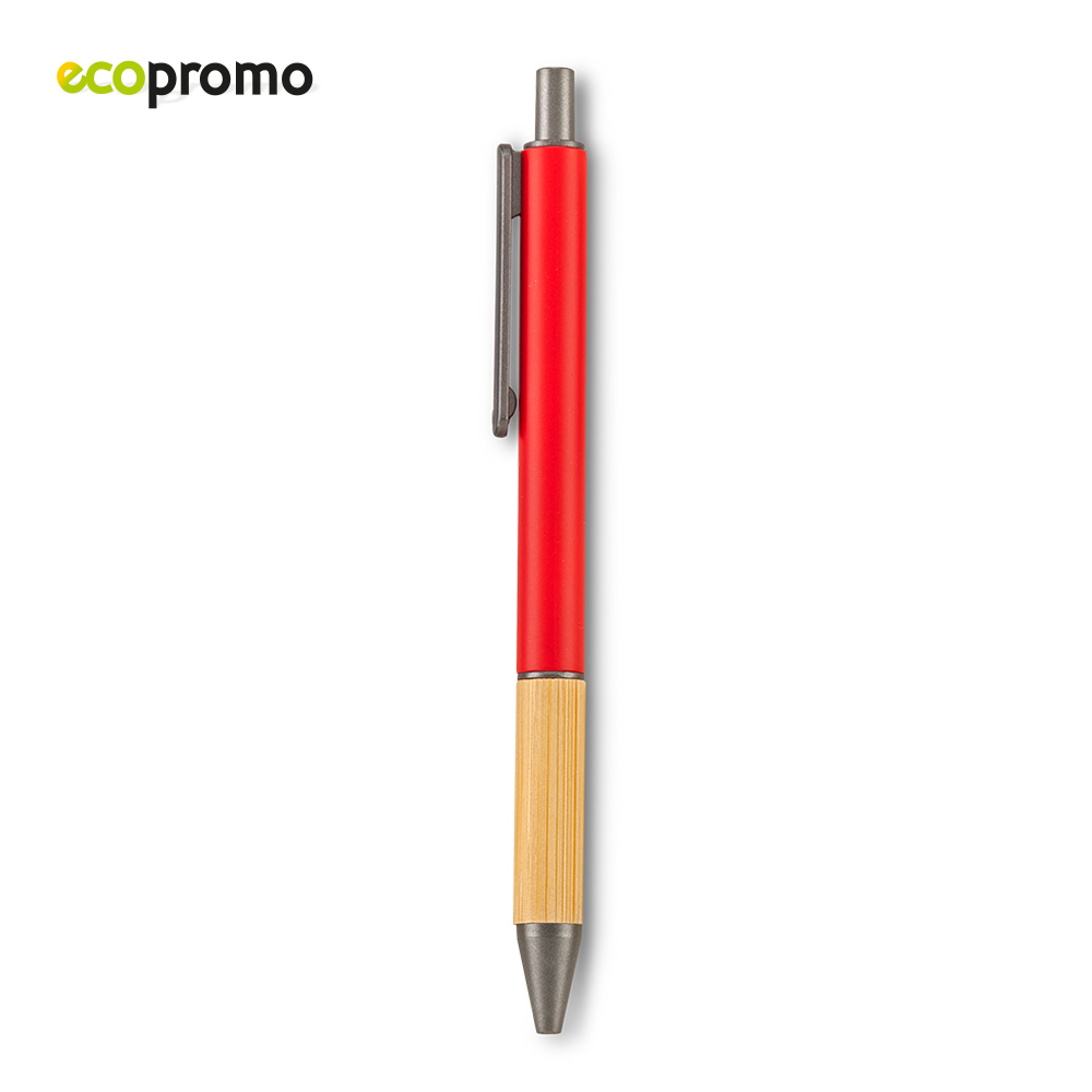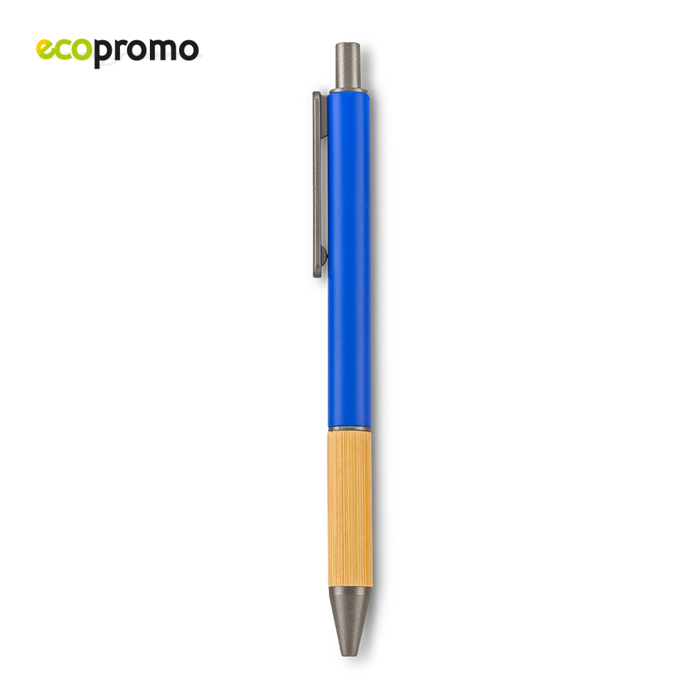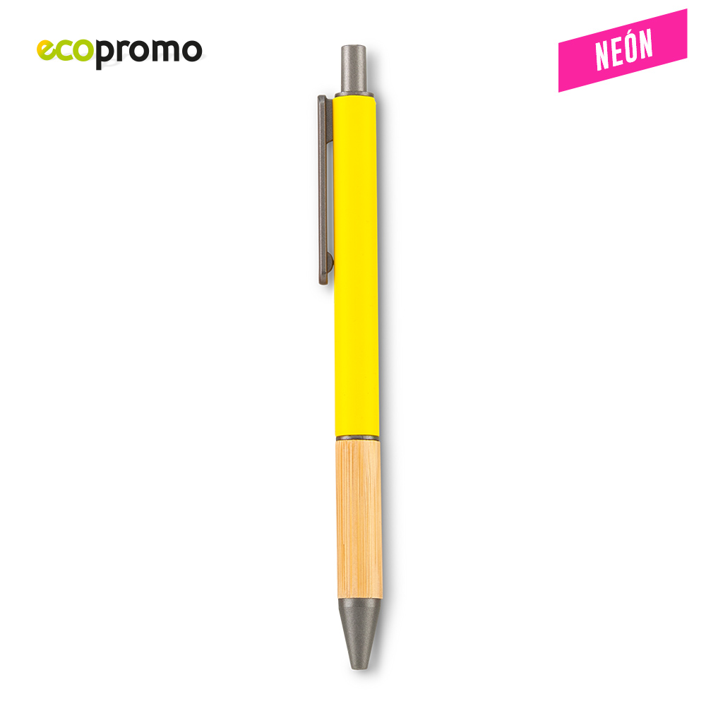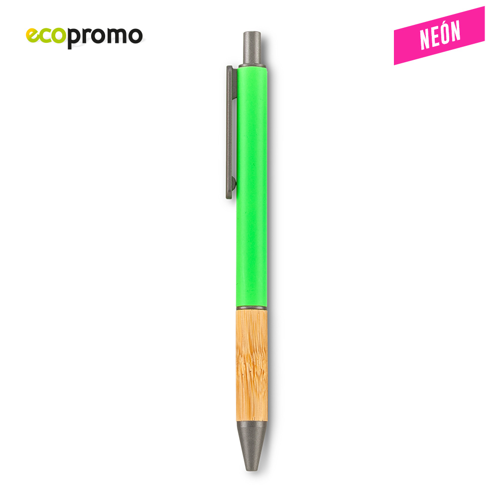 Bolígrafo plástico con grip de bambú. Mecanismo Push. Medidas: 14.5 cm Marca: 3.5 cm / Tampografía