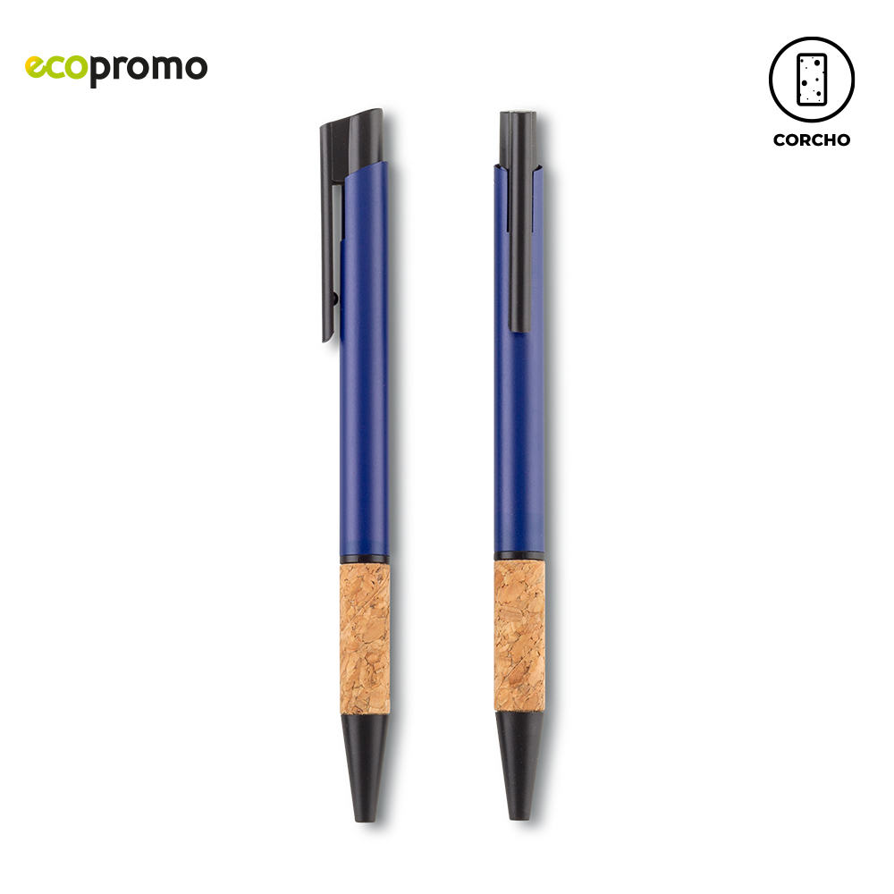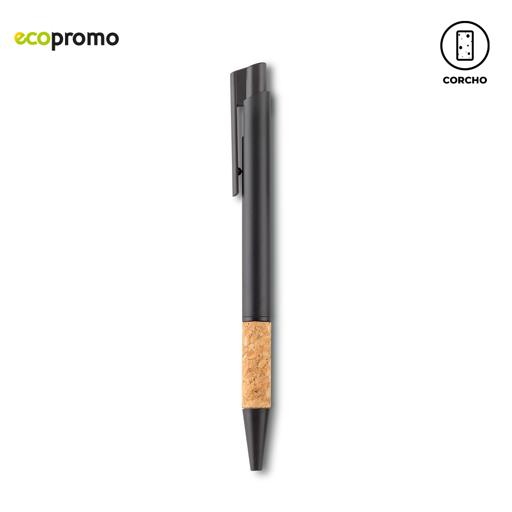 Bolígrafo metálico tipo push. Con grip en corcho. Medidas: 14 cm. Marca: 3.5 cm / Tampografía / Láser.