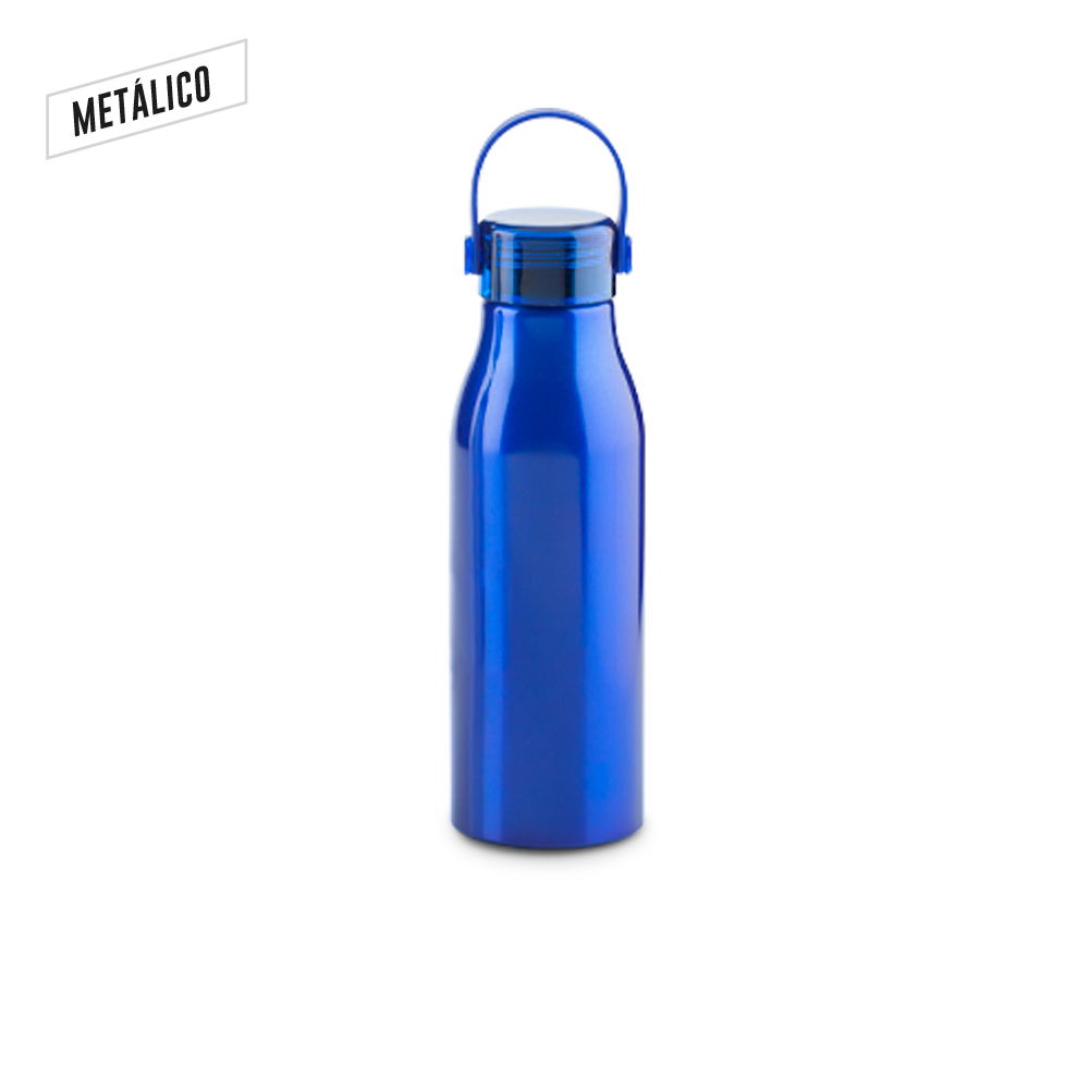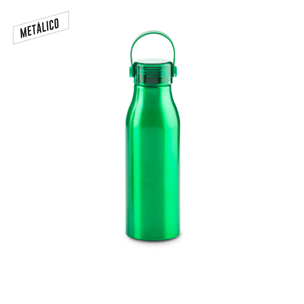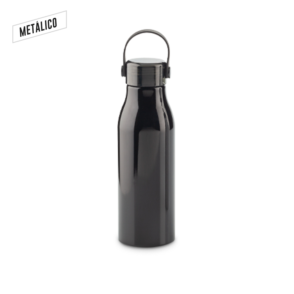 Botilito en aluminio con tapa rosca y agarradera en caucho. Empaque caja individual.