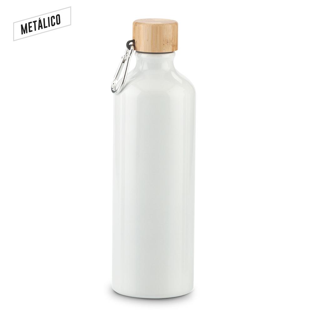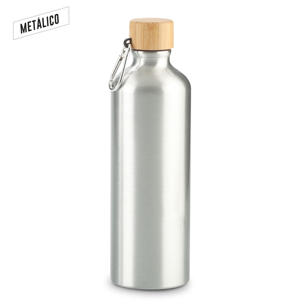 Botilito en aluminio con tapa rosca en bambú y carabinero.