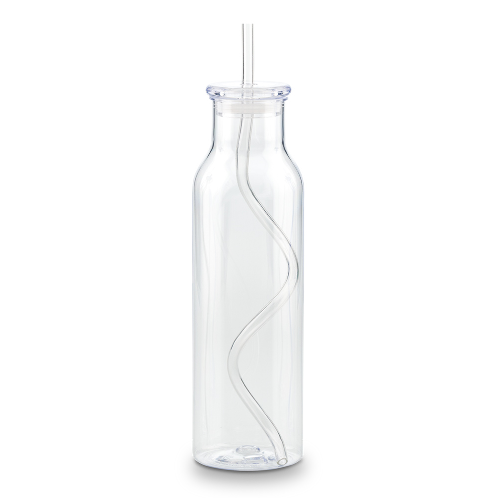 Botilito plástico en AS, con tapa plástica. Incluye pitillo plástico en espiral.