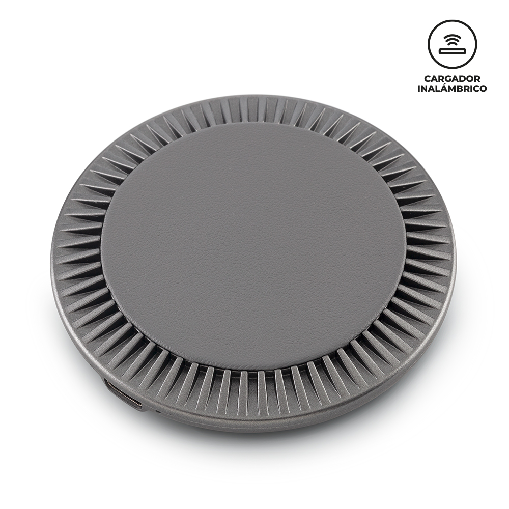 Cargador inalámbrico plástico con poliuretano. Salida: 5V, 1A / 15W Máx. Empaque caja individual. Medidas: 8 cm diámetro. Marca: 3 cm / Tampografía.