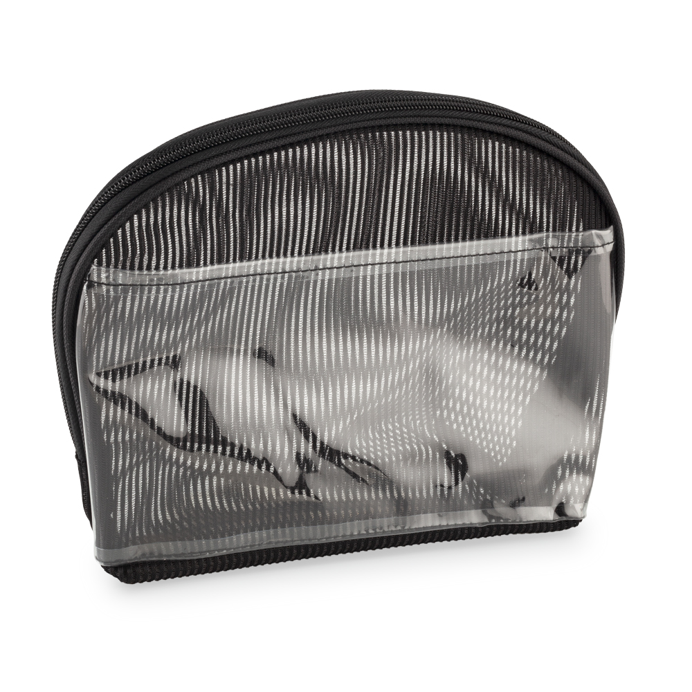 Cosmetiquera en poliéster con un bolsillo externo en PVC.