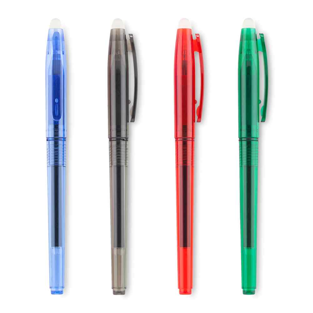 Bolígrafo plástico con tinta borrable. Con borrador.