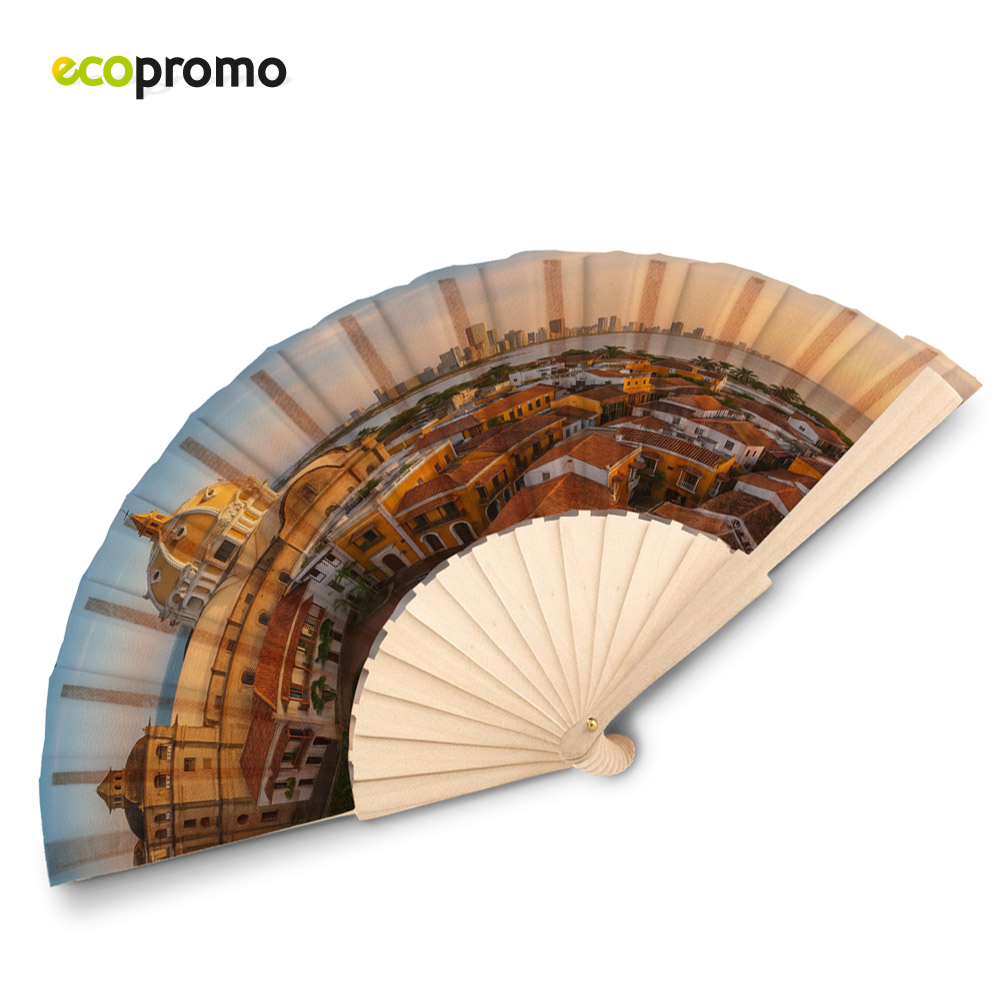 Cuerpo en madera para Abanico importado de 14 brazos. Tela de producción nacional color blanco para sublimación. El cuerpo en madera no se vende por separado.