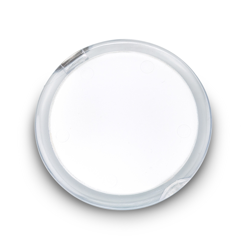 Espejo plástico doble, uno con aumento. Medidas: 7 cm diámetro Marca: 4.5 cm / Tampografía