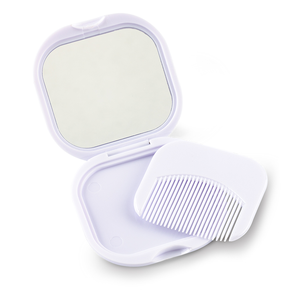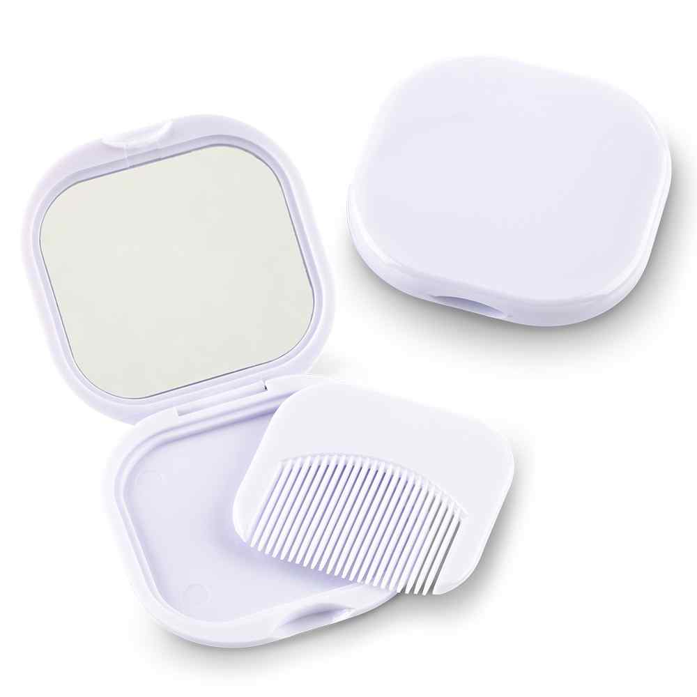 Espejo plástico con peinilla. Artículo para uso personal, no se admiten cambios/devoluciones. Medidas: 7 cm x 7 cm Marca: 3.5 cm / Tampografía
