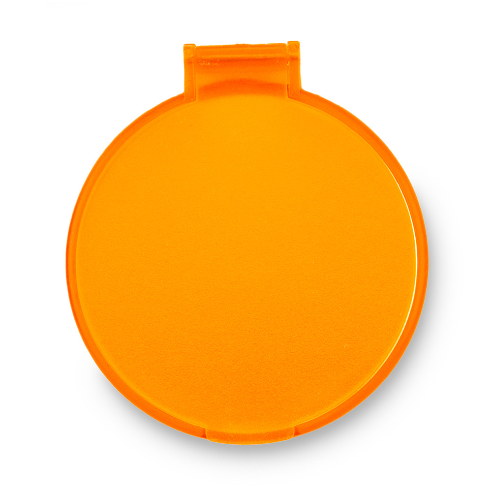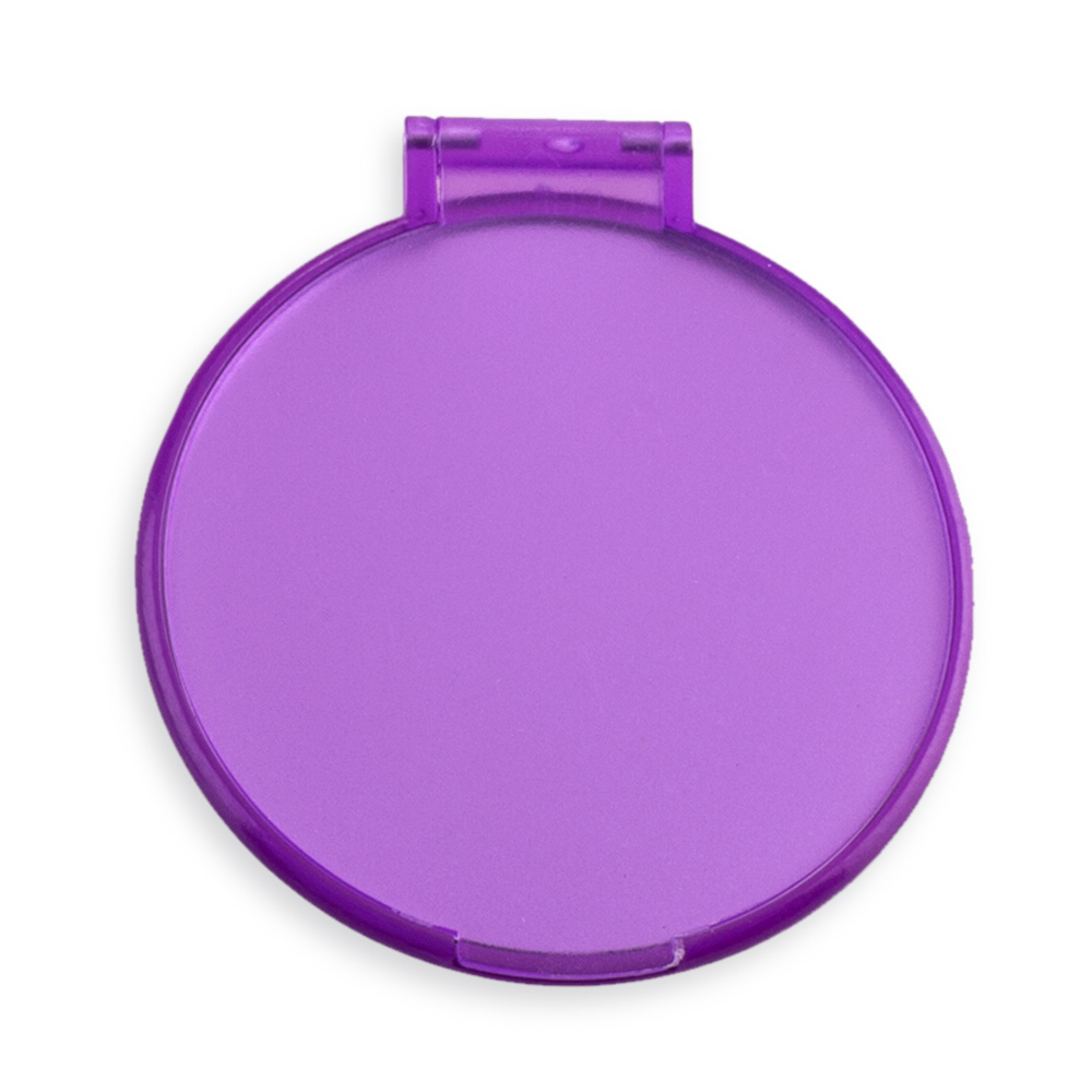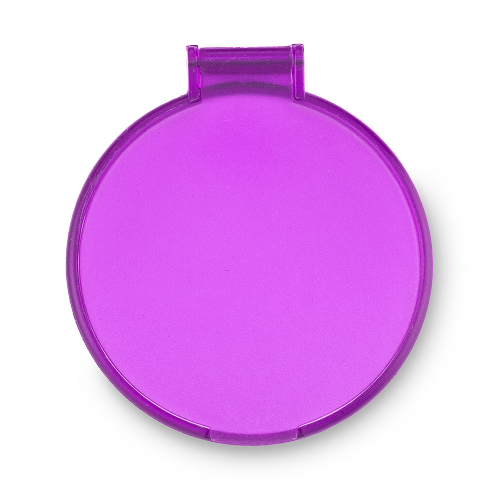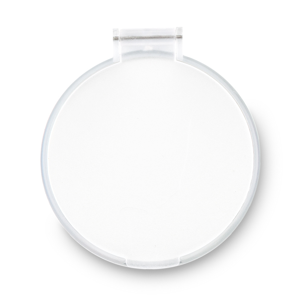 Espejo plástico. Acabado frost. Medidas: 6 cm diámetro Marca: 2.5 cm / Tampografía