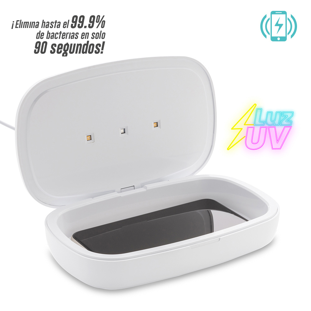 Es un producto que consume poca energía y ambientalmente amigable. La luz UV LED solo funciona con el dispositivo completamente cerrado. La función de carga inalámbrica se realiza colocando el smartphone sobre la tapa del esterilizador.