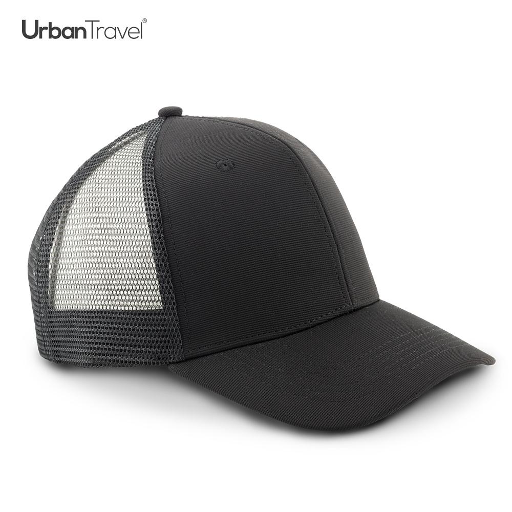 Gorra en poliéster de alta calidad, de 6 páneles (4 de malla en parte posterior y 2 en poliéster en el frente). Con botón forrado y visera indeformable. Con cierre plástico.