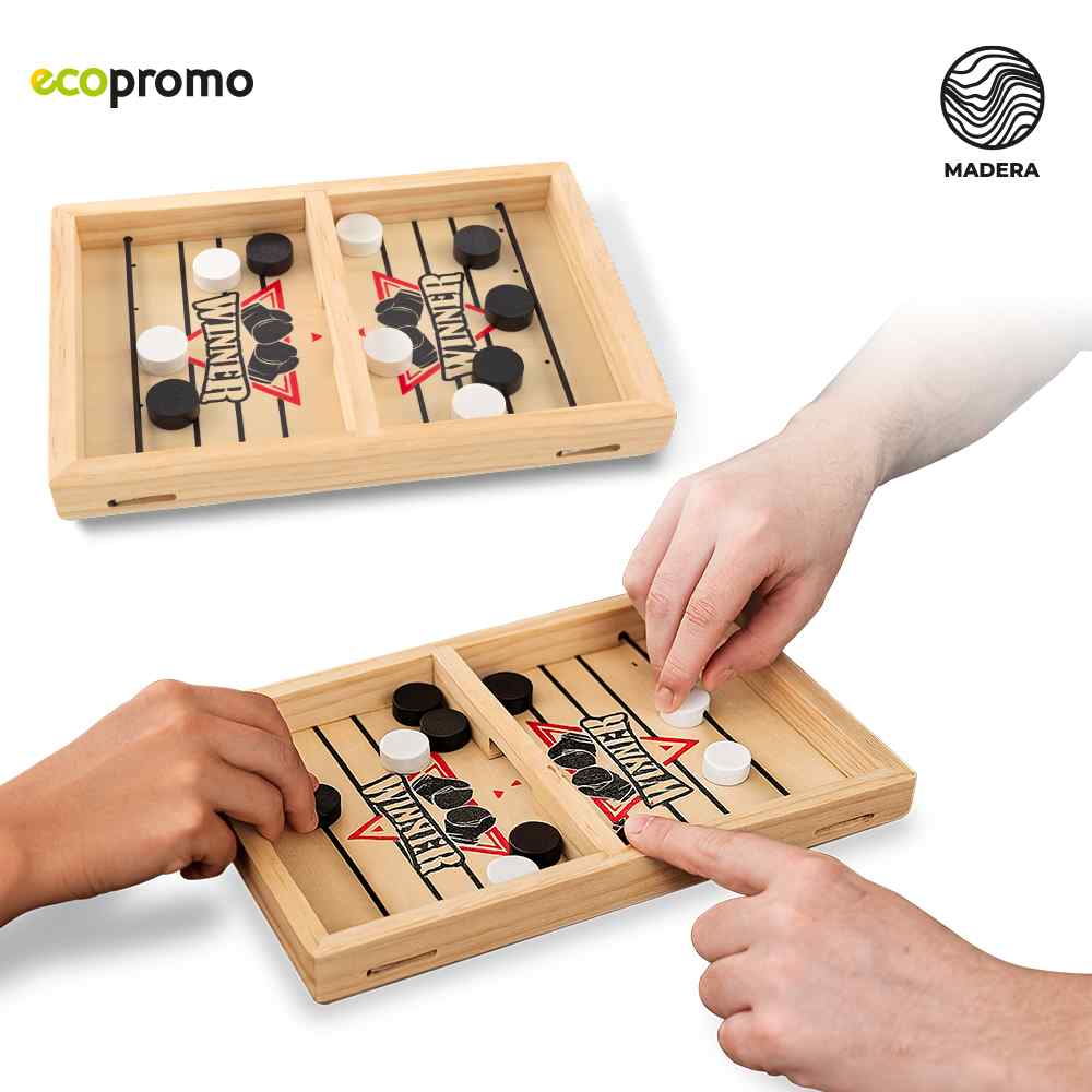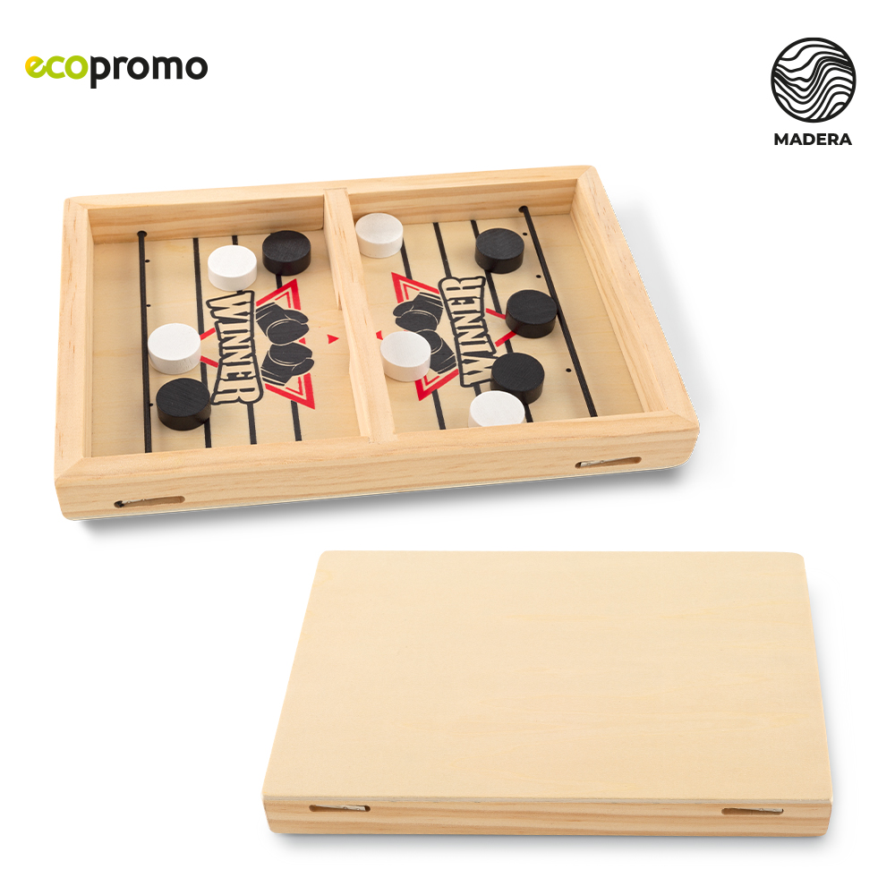 Juego en madera de eyección. Incluye tablero y fichas en madera. Empaque caja individual. Medidas Caja: 22.5 cm x 15.5 cm x 3 cm. Marca: 3 cm / Láser / Tampografía