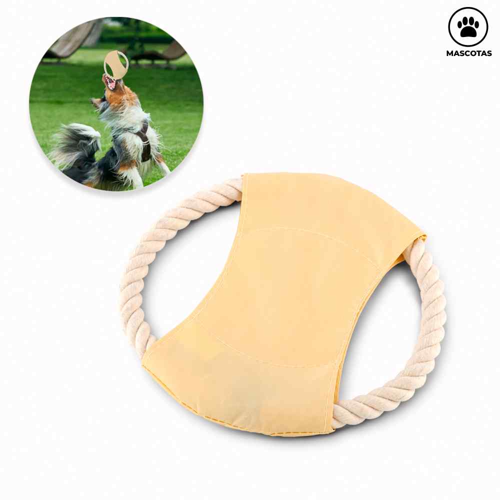 Juego estilo frisbee para lanzarle a su mascota. Cuerda en algodón y base en poliéster.
