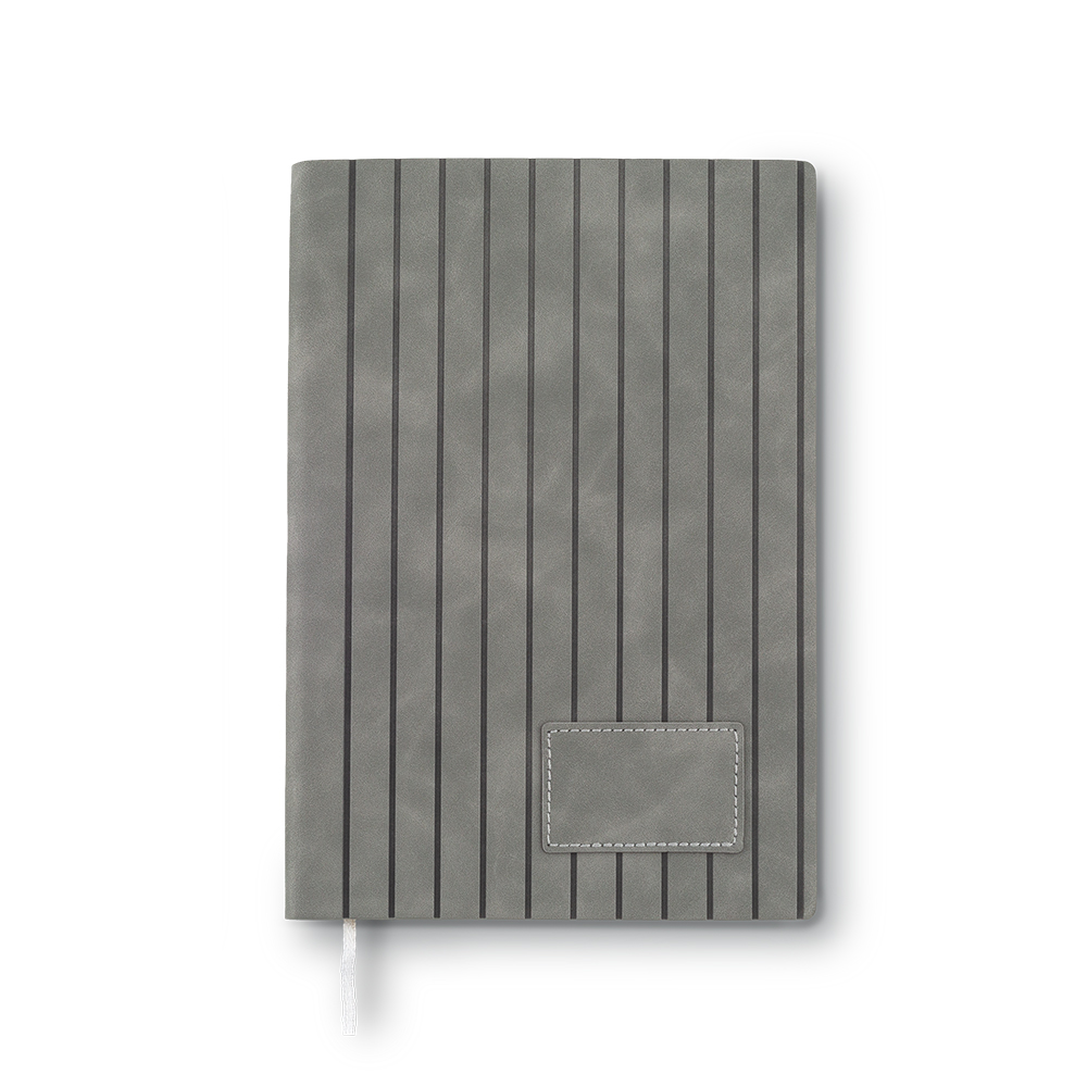 Libreta con cubierta en poliuretano. 80 hojas rayadas. Medidas: 14.5 cm x 21 cm. Marca: 3 cm / Tampografía.