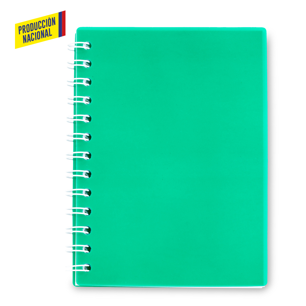 Libreta de 80 hojas con rayas, cubierta en polipropileno. No incluye bolígrafo.