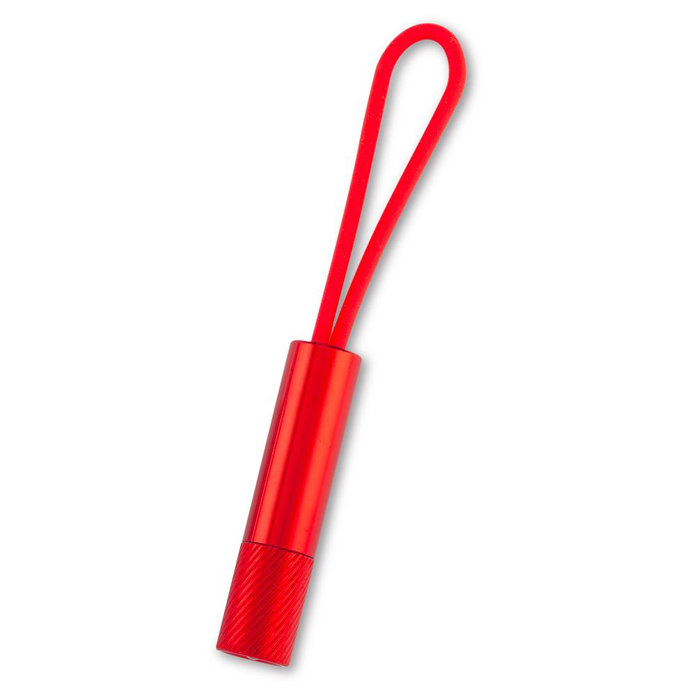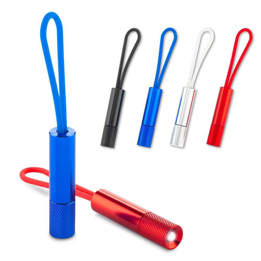 Linterna en aluminio con agarradera en silicona. Medidas: 5.5 cm x 1.2 cm diámetro Marca: 2.5 cm / Tampografía, producto con tratamiento
