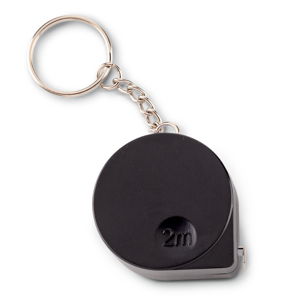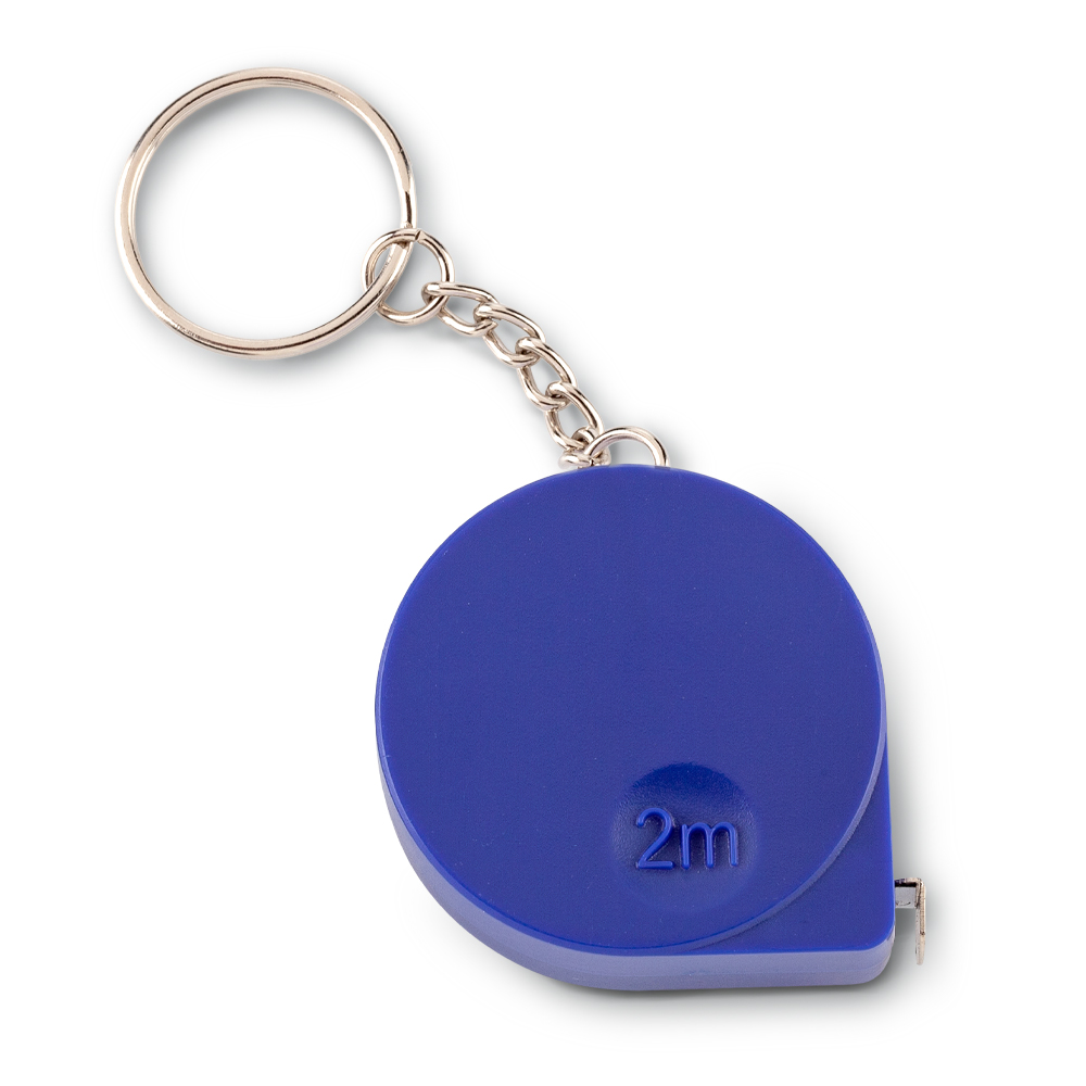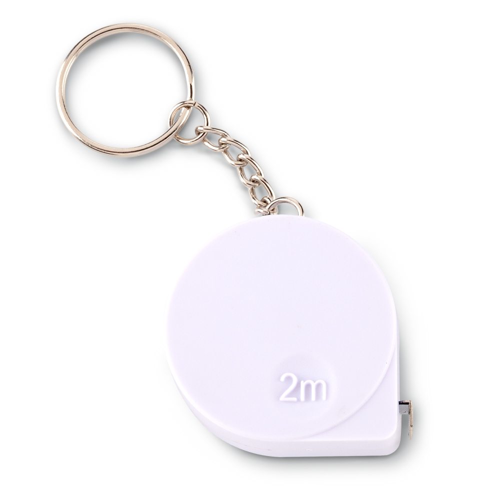 Llavero plástico con metro de 2 mts. Medidas: 4 cm diámetro x 1.5 cm. Marca: 3 cm / Tampografía.