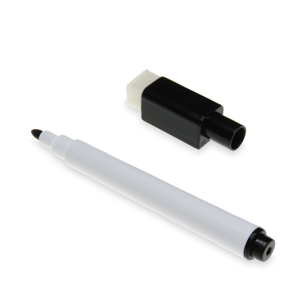 Marcador borrable tinta negra, con almohadilla para borrar e imán. Medida: 11cm de largo Marca: 4cm / Tampografìa