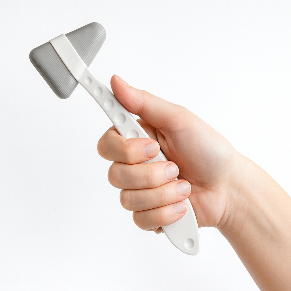 Martillo plástico para reflejos con mini cordel para sensibilidad. Empaque caja individual. Medidas: 19 cm x 5 cm. Marca: 2 cm / Tampografía.