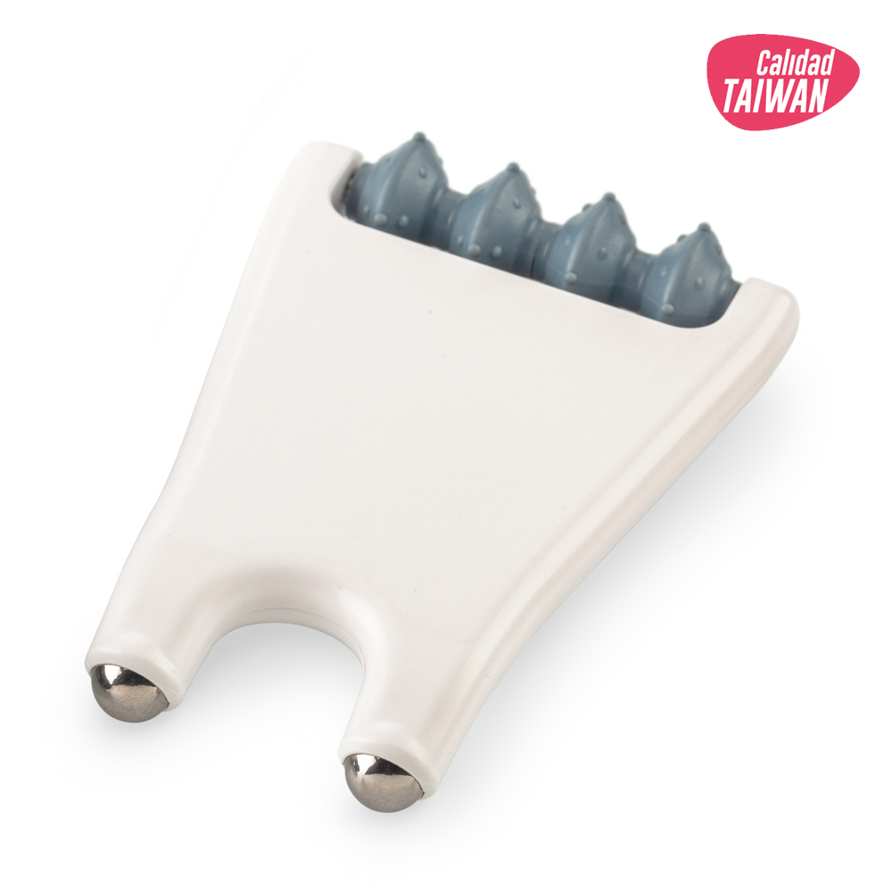 Masajeador plástico 2 en 1. Diseño y patente de Taiwan. Medidas: 7.5 cm x 5.5 cm. Marca: 2 cm / Tampografía.
