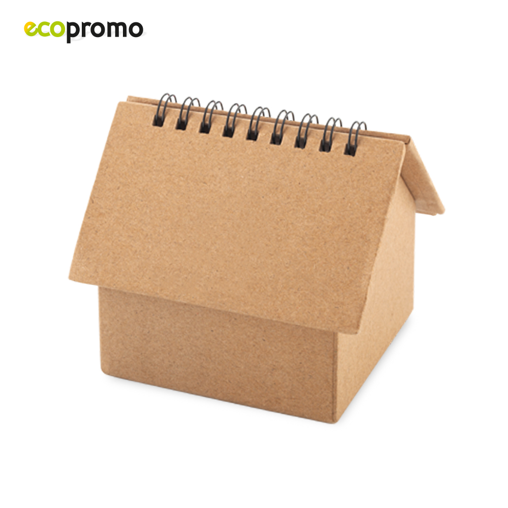 Casa en cartón la cuál funciona como base para 6 stickies de colores y taco de hojas sin rayas. Medidas: 10.2 cm x 10 cm x 8.5 cm. Marca: 5.5 cm / Tampografía