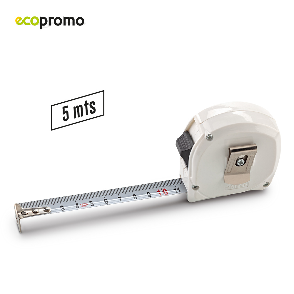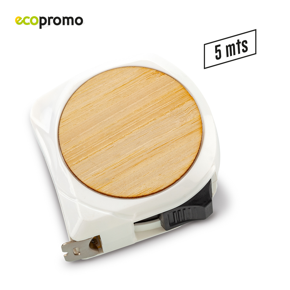 Metro plástico de 5 m con partes de bambú. Medidas: 6 cm x 6.5 cm x 3 cm Marca: 5.5 cm / Láser