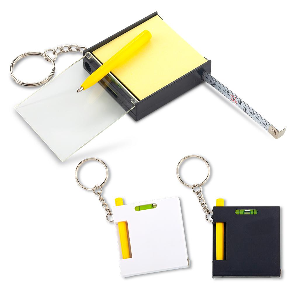 Cinta métrica de 1 metro. Incluye mini bolígrafo y minipad de notas adhesivas.