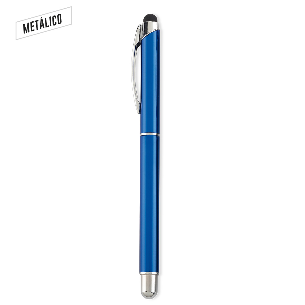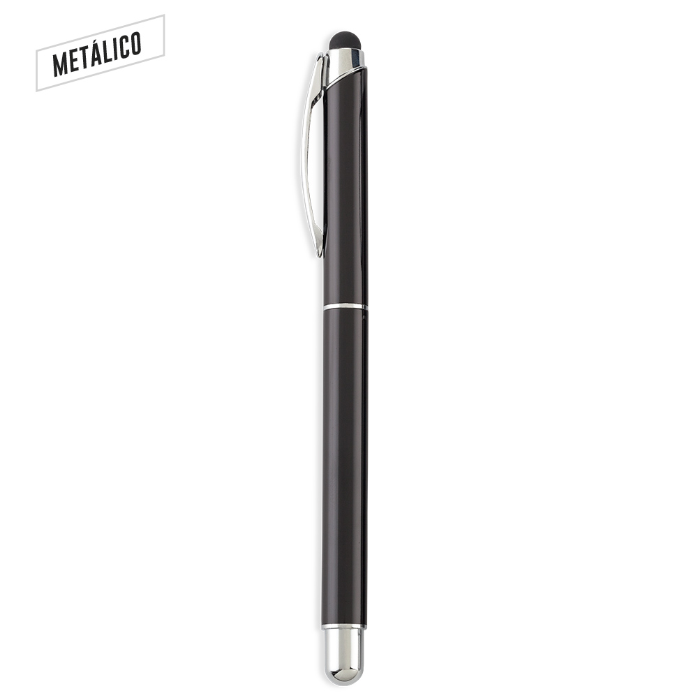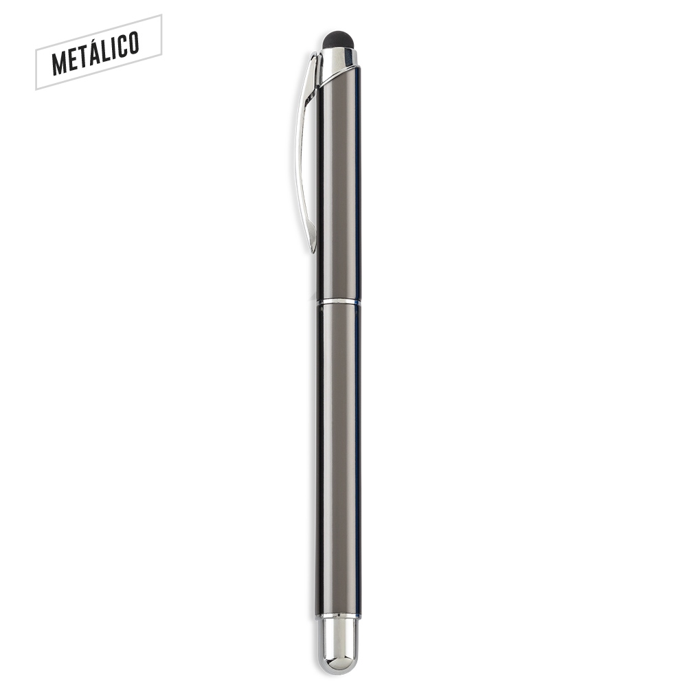 Bóligrafo roller metálico con stylus. Medidas: 14.5 cm Marca: 3.5 cm / Láser