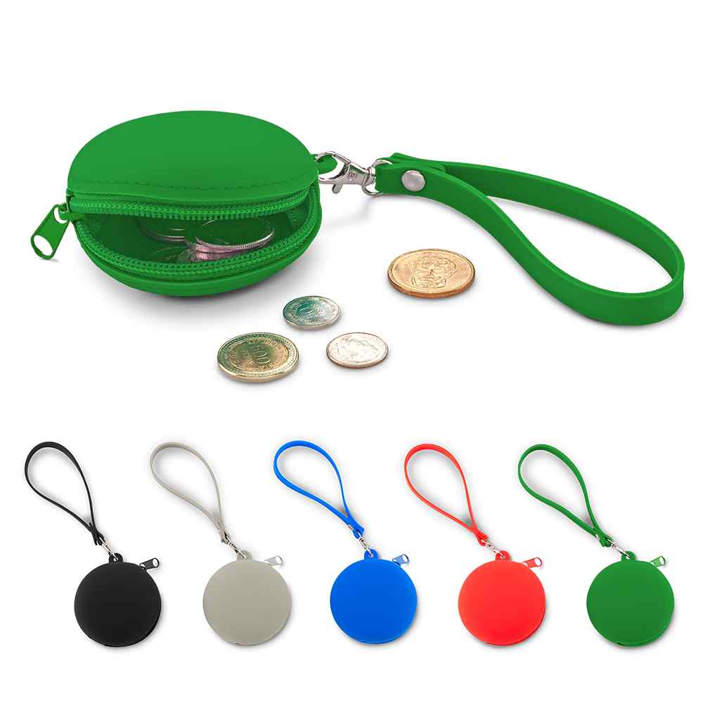 Monedero en silicona flexible. Con accesorio en silicona para poderlo cargar.
