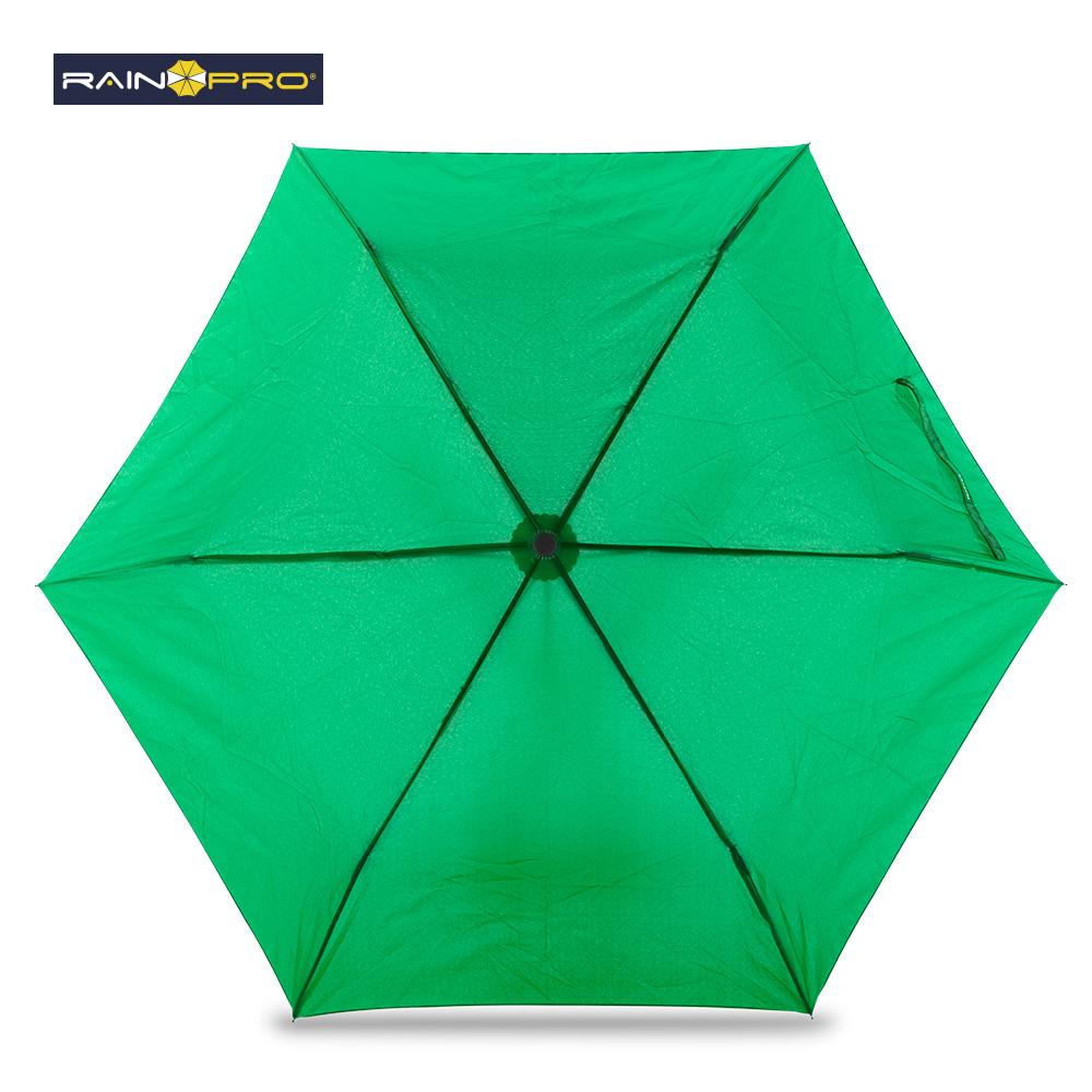Poliéster pongee 190T. Mango ergonómico en plástico acabado caucho y punta con gancho decorativo para girar y colgar. Herraje metálico. Apertura y cierre manual. 6 Cascos. Con forro para cargar.