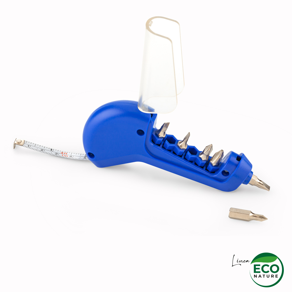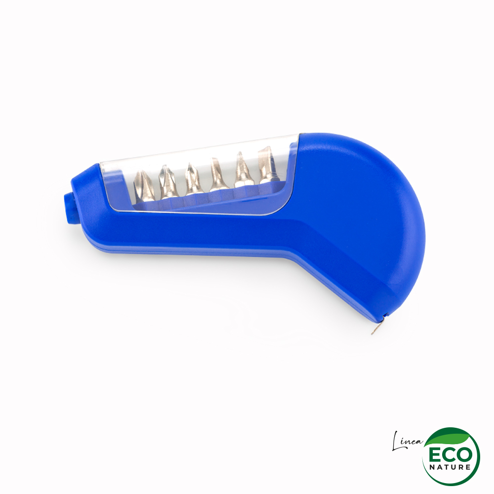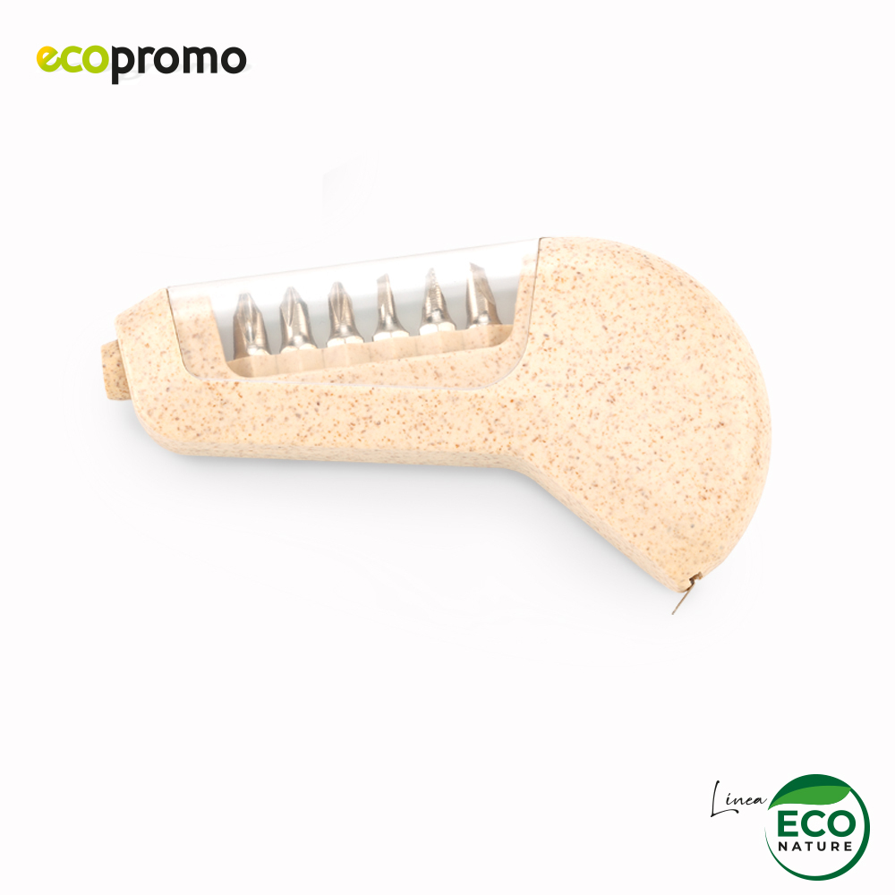 Mini set plástico de 6 piezas de destornilladores y metro de 1mt. Color natural en fibra de trigo. Empaque caja individual. Marca: 2 cm / Tampografía. Medidas Caja: 11.4 cm x 7 cm x 2 cm.