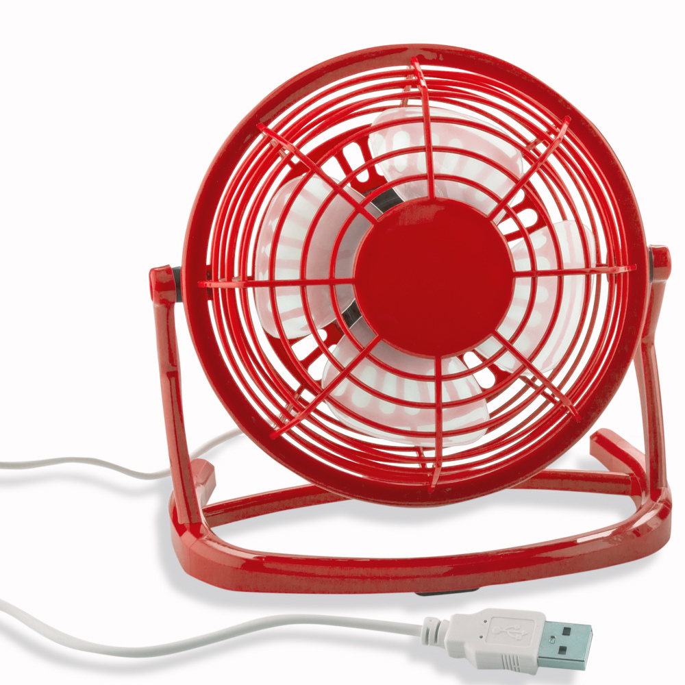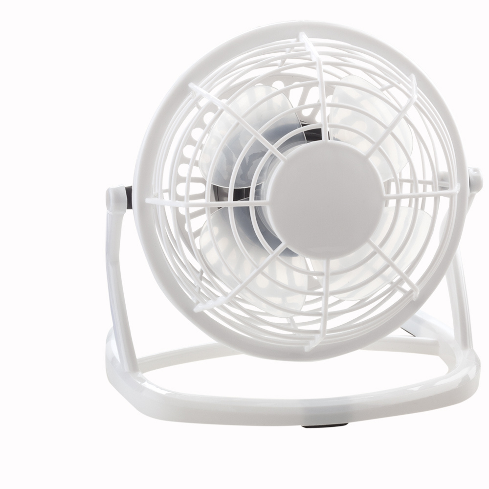 Mini ventilador de escritorio con cable USB. Empaque Caja Individual. Medidas: 15 cm x 15 cm Marca: 2.5 cm / Tampografía