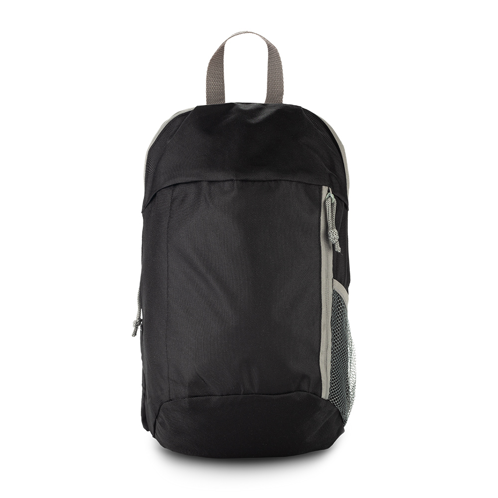 Morral en poliéster 600D, bolsillo externo con cremallera, con malla portabotella.