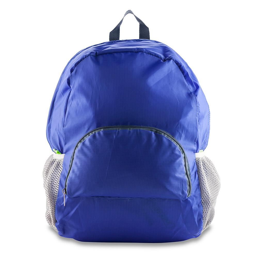 Morral backpack plegable en poliéster con dos bolsillos de malla.