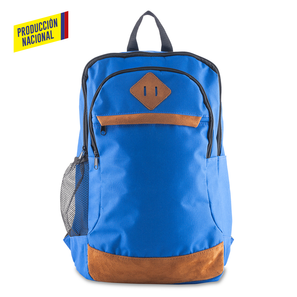 En poliéster, con accesorios en gamuza sintética. Con un bolsillo lateral, malla portabotella y dos bolsillos frontales. Espaldar acolchado. Medidas: 43 cm x 30 cm x 16 cm Marca: 12 cm / Screen