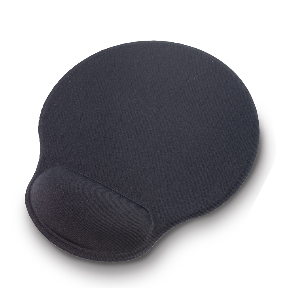 Mouse Pad con parte superior en poliéster. Apoya muñecas ergonómico acolchado.