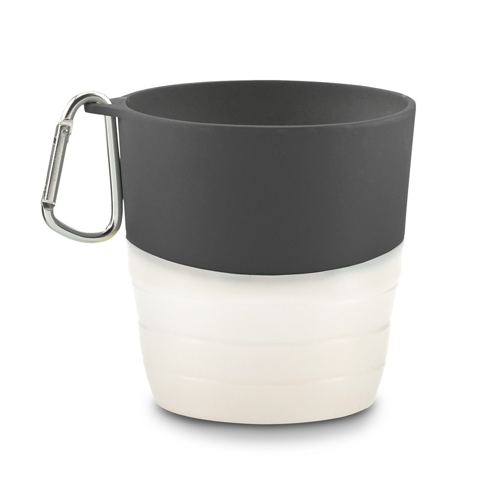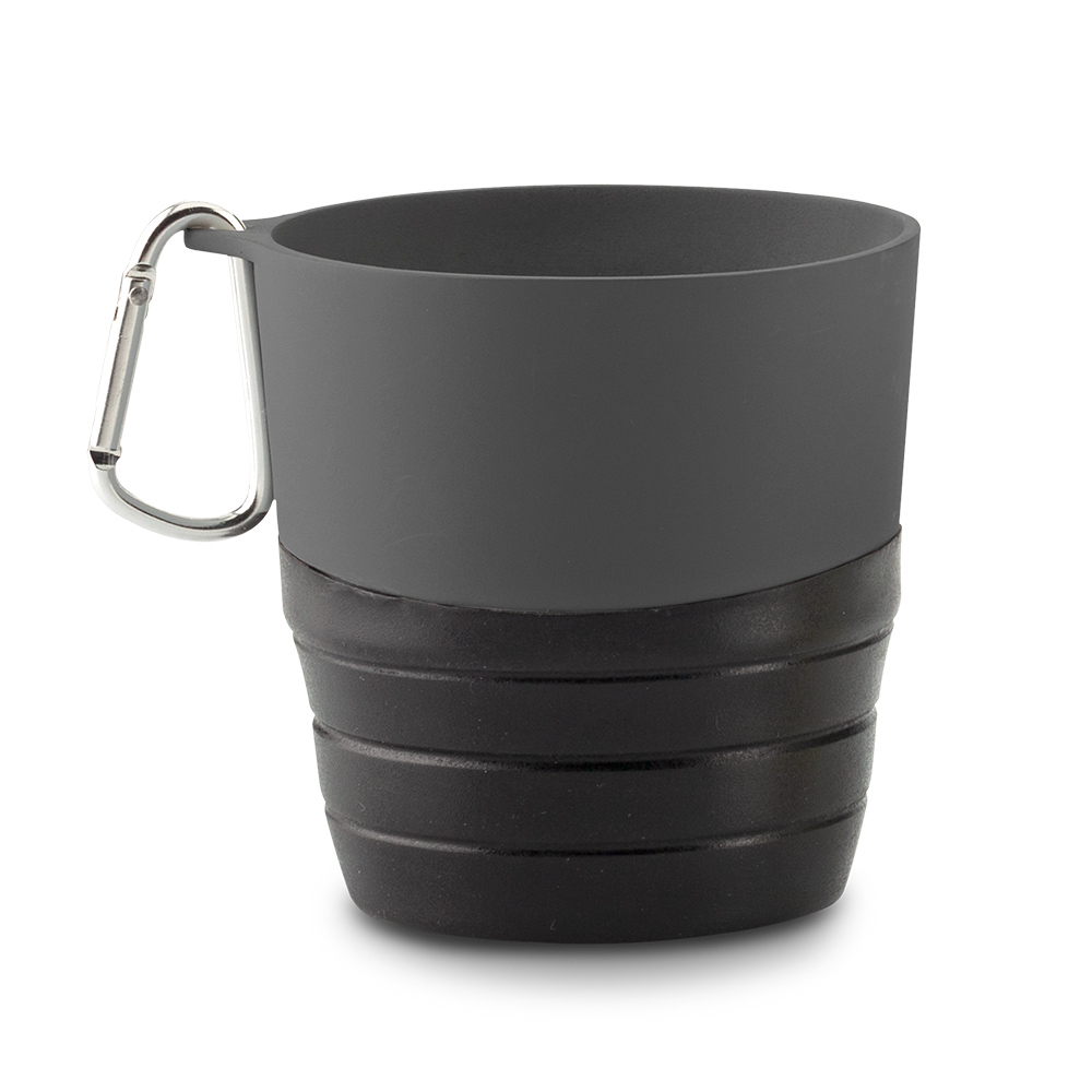 Mug plegable para cargar. en caucho TPR, con gancho carabinero. NOTA: Al ser un caucho plegable la base debe ser ajustada manualmente para mayor estabilidad.