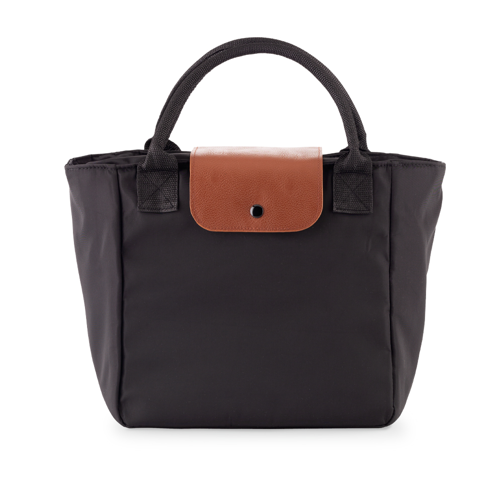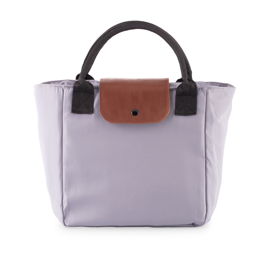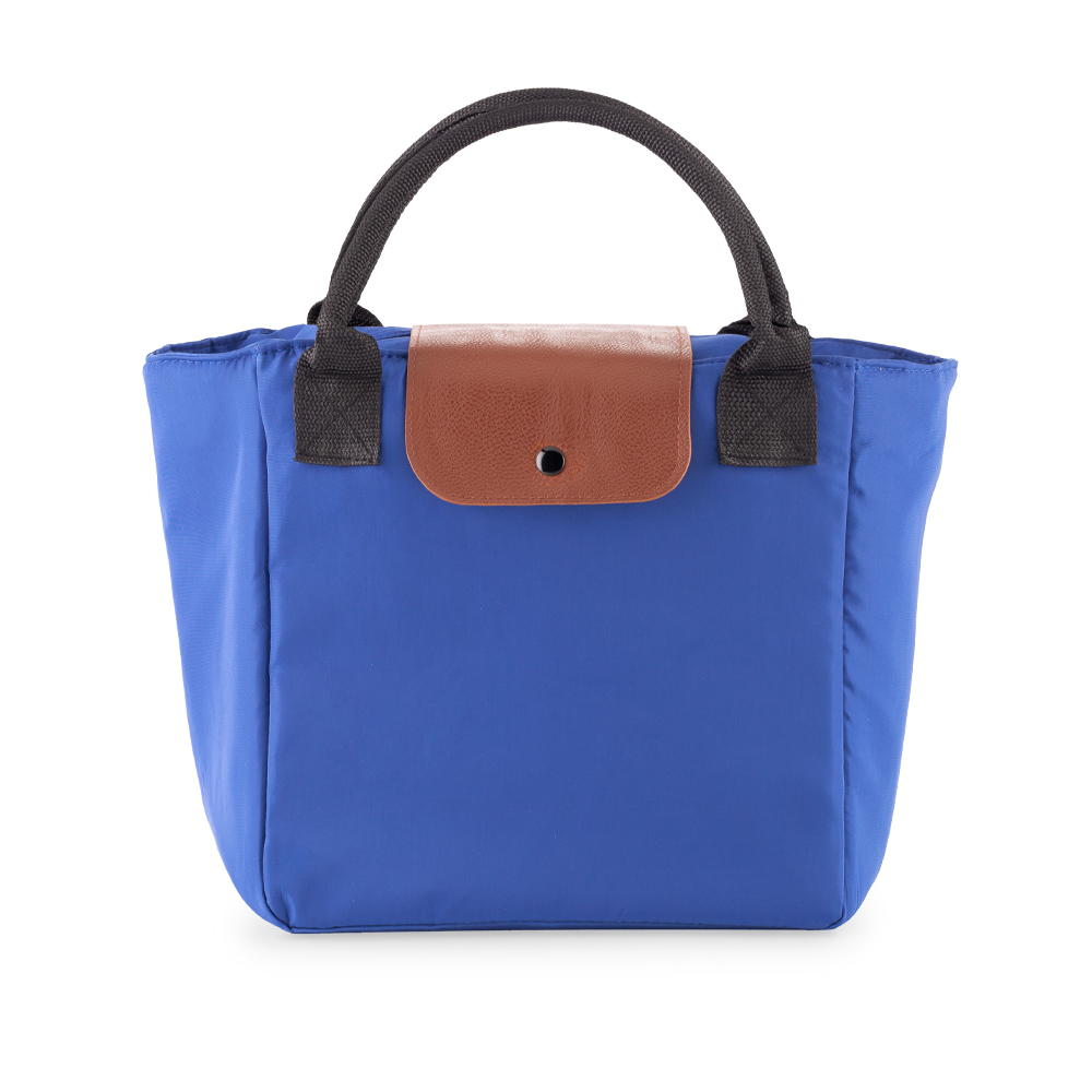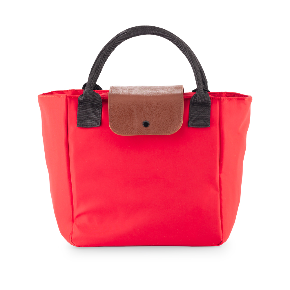 Nevera en poliéster con interior en PVC, cierre de cremallera y broche. Un bolsillo externo con cremallera.