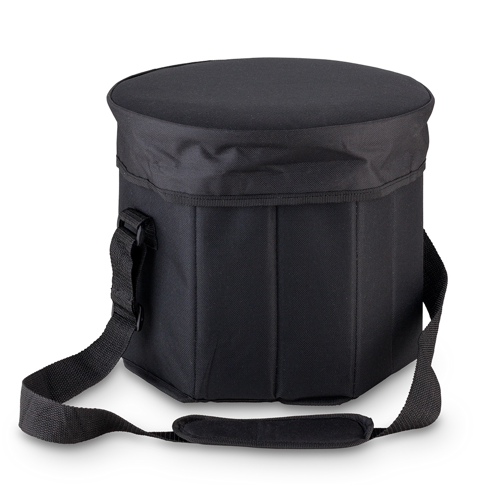 Nevera en poliéster con base interna y tapa que sirve como silla al estar armado y cerrado. Con manija para cargar. Resistencia interna 6 kg, soporta hasta 80 kg de peso al estar sentado siempre que la nevera esté bien armada y con base.