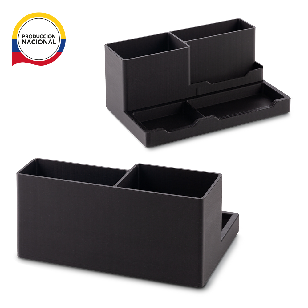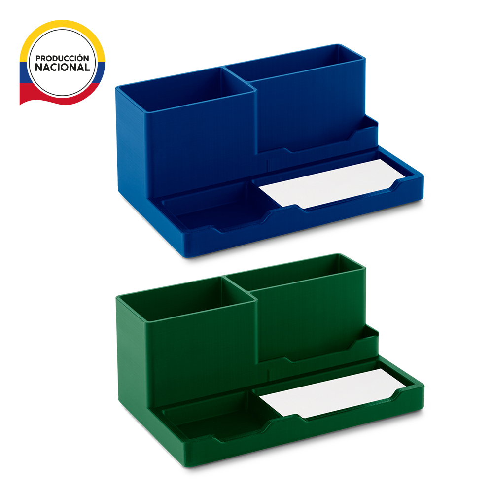 Organizador de escritorio plástico. Incluye taco de papel de 100 hojas. Medidas: 18 cm x 12 cm x 8.8 cm. Marca: 4 cm / Tampografía.